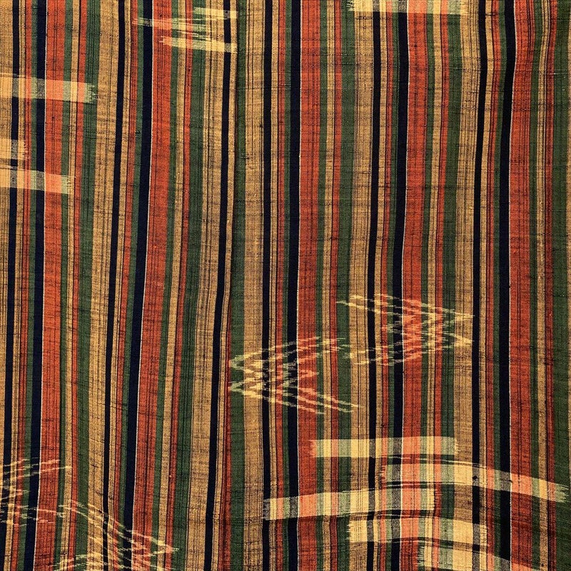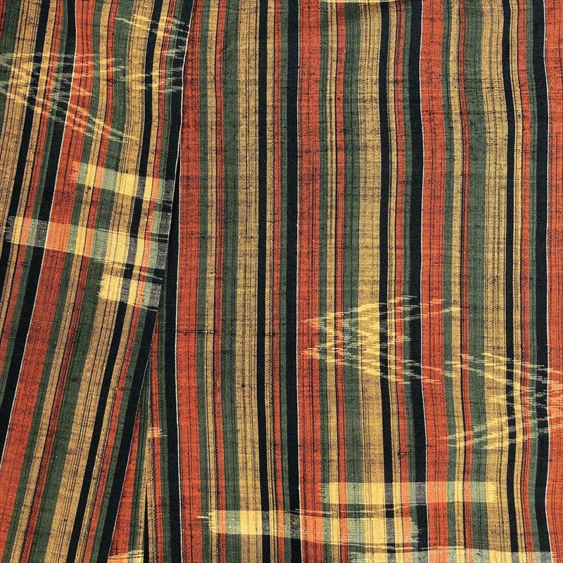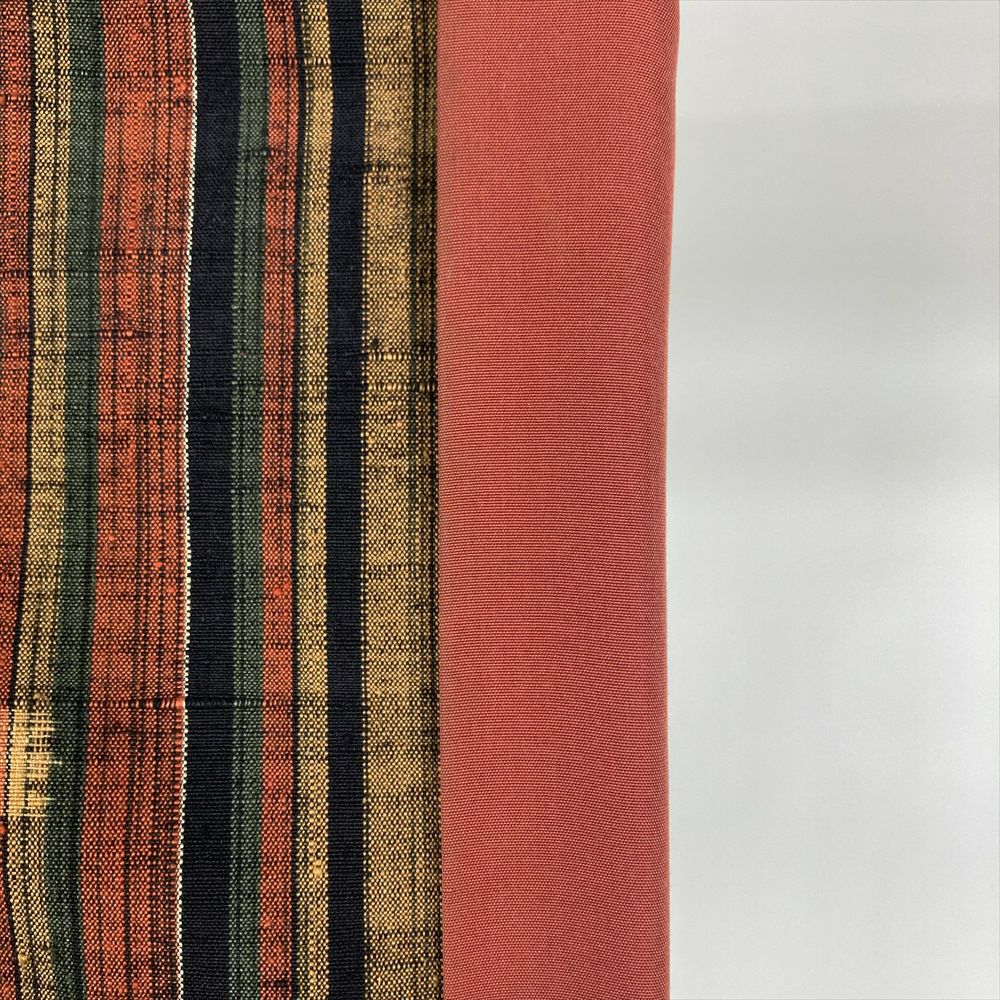 【色柄】薄橙 オレンジ 柿色 緑 カジュアル 織り 変わり縞に幾何学