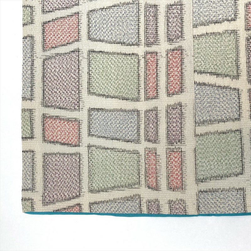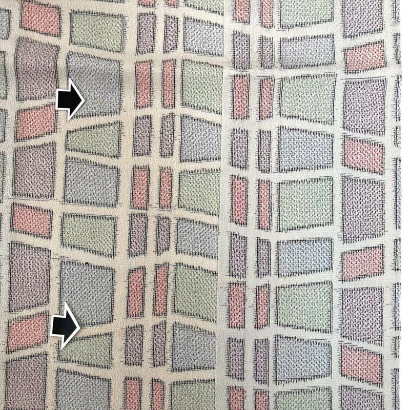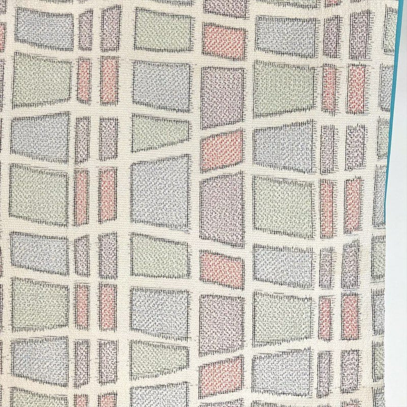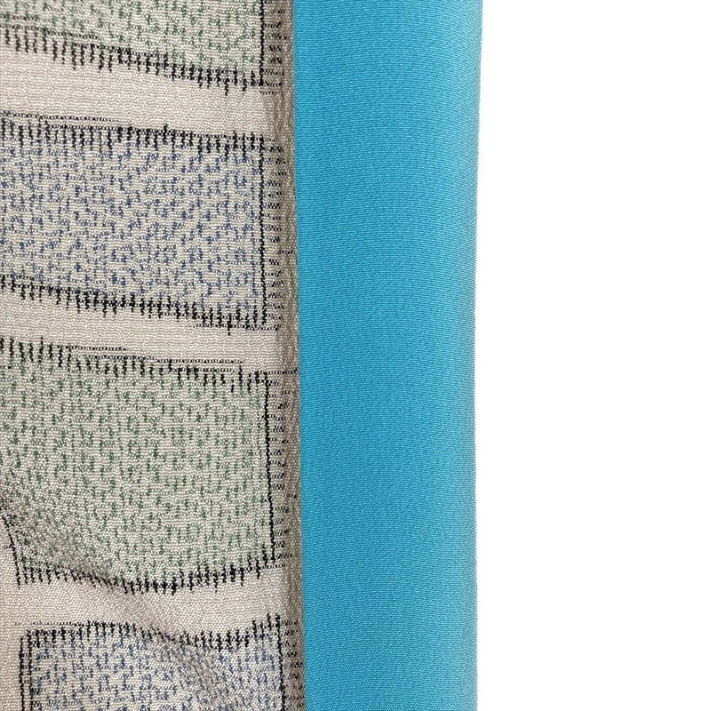 表面に細かいシボ状の風合いがあるため、薄手でザラザラとした手触りを感じます。普段着やおしゃれ着として使えるカジュアルなお着物です。衿裏、胴裏にシミ汚れがございます。保存臭がややございます。右前 左袖前シミあり。十日町紬
