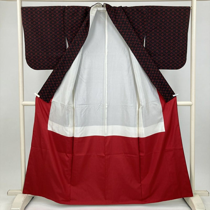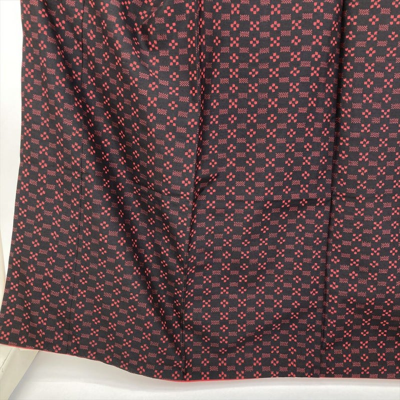 (中古) 紬 黒 赤 カジュアル 変わり市松 袷 絹【身丈】156.5cm【裄丈】69cm