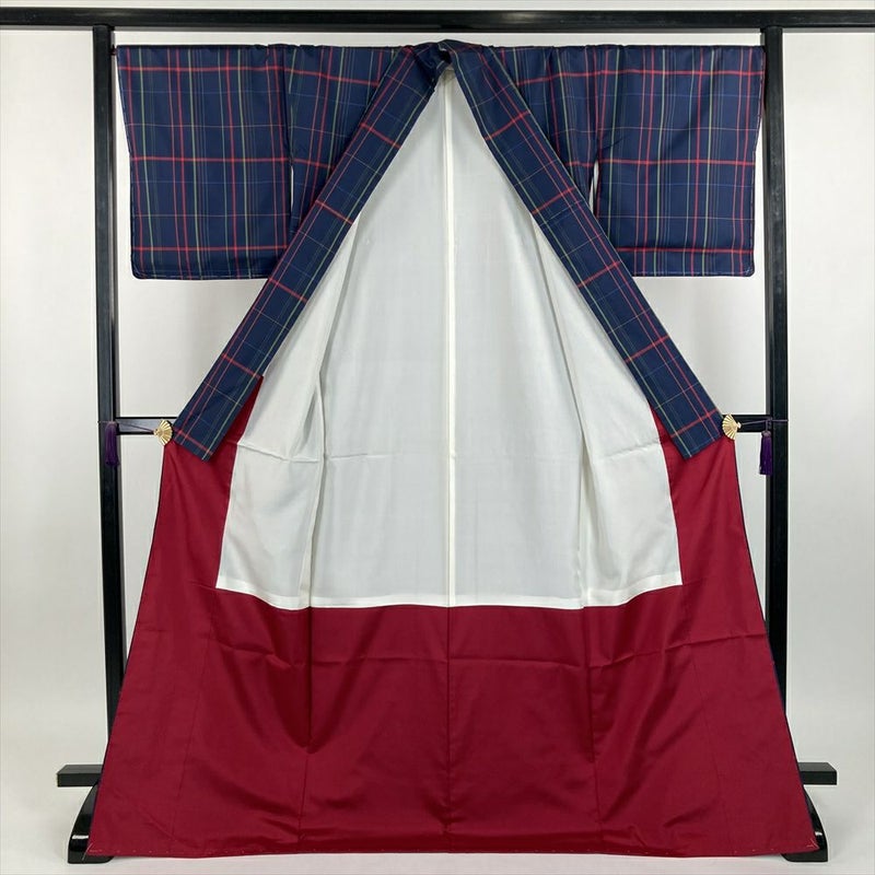 深みのある紺色は、大人の女性を上品に見せ、ローズレッド色は、華やかさを添えます。しっとりとした絹の肌触りが、心地よく、初めての着物でも安心して着用できます。