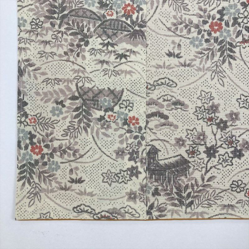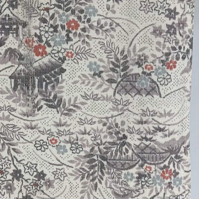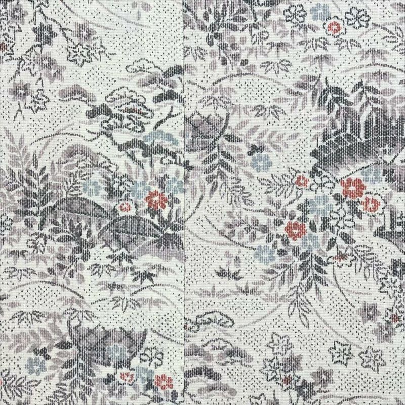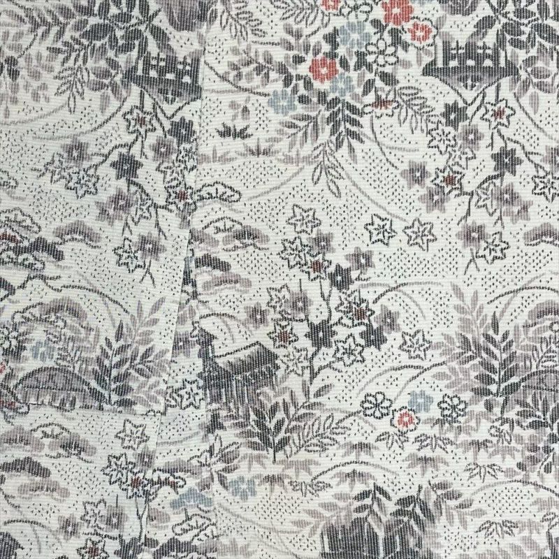 【色柄】生成り カジュアル 織り 四季の草花 家屋と垣根