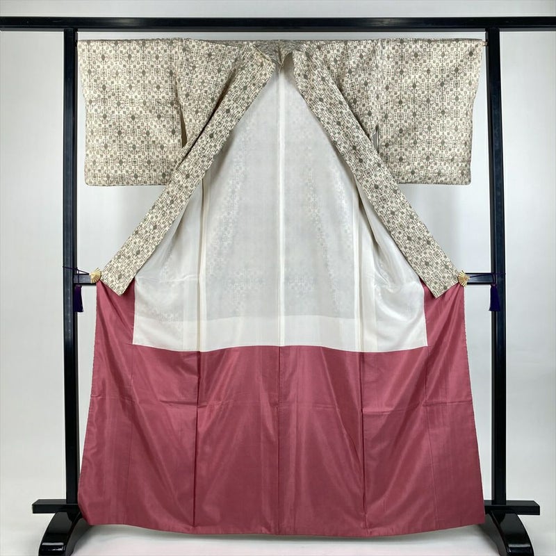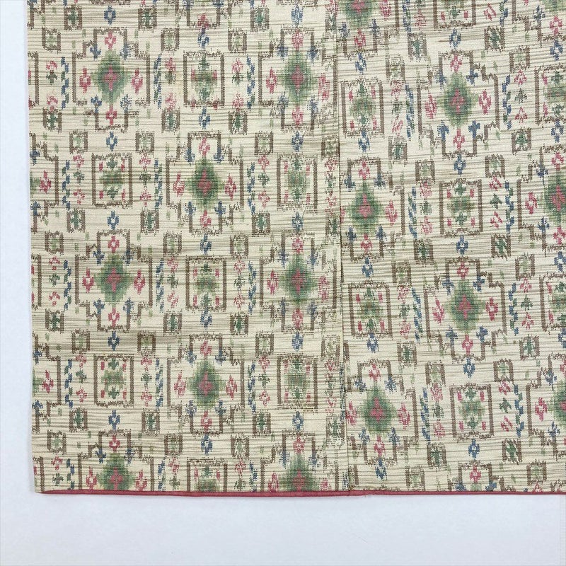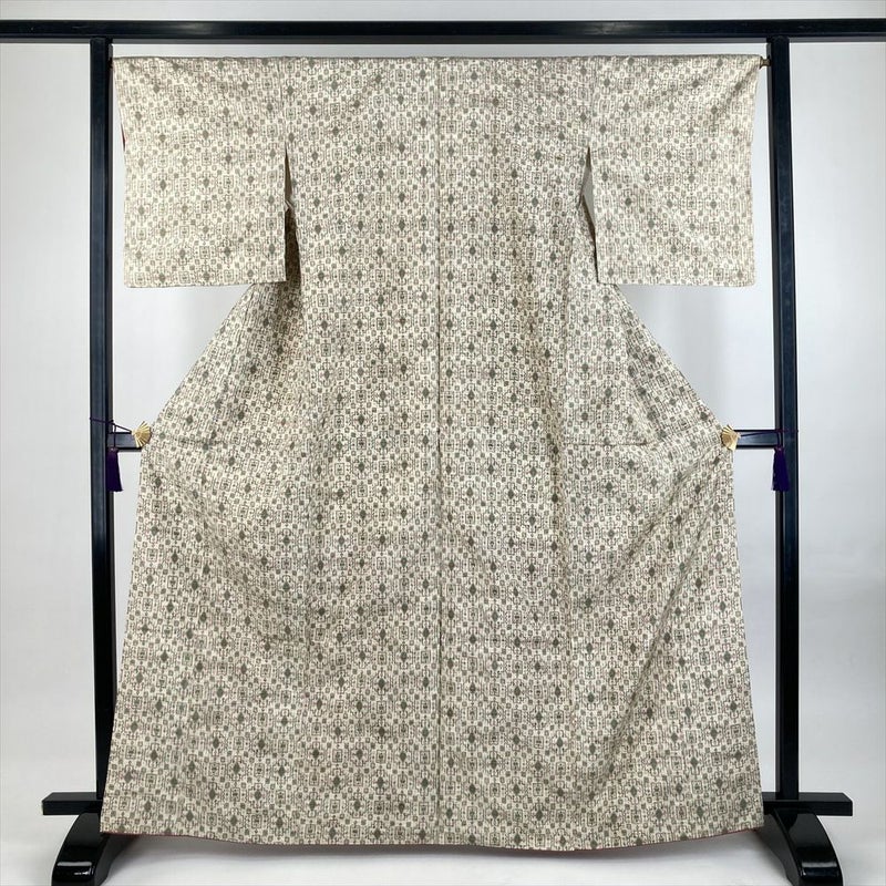 (中古)紬 生成り カジュアル 織り 幾何学 袷 M【身丈】161cm【裄丈】67cm