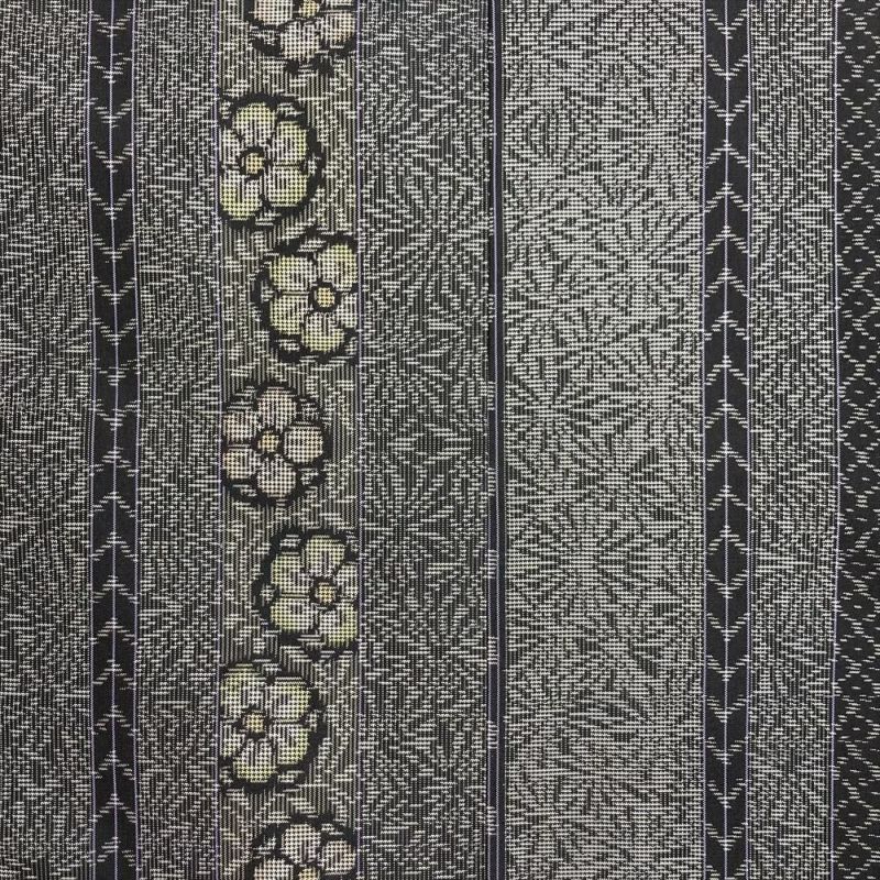 【色柄】黒 薄灰 グレー カジュアル 織り 縦に花柄 矢羽根 菱