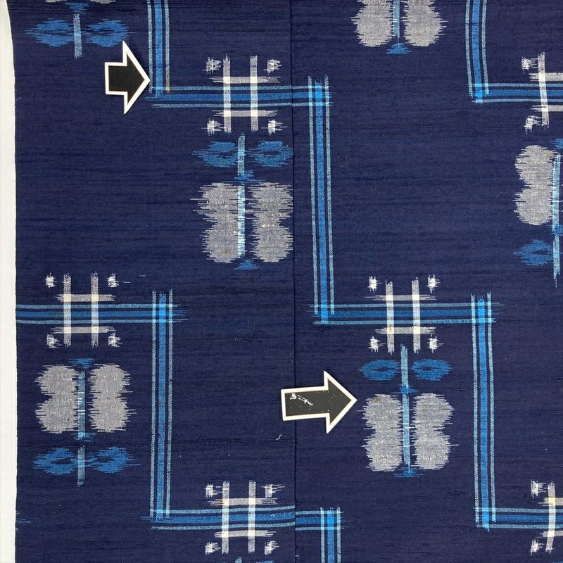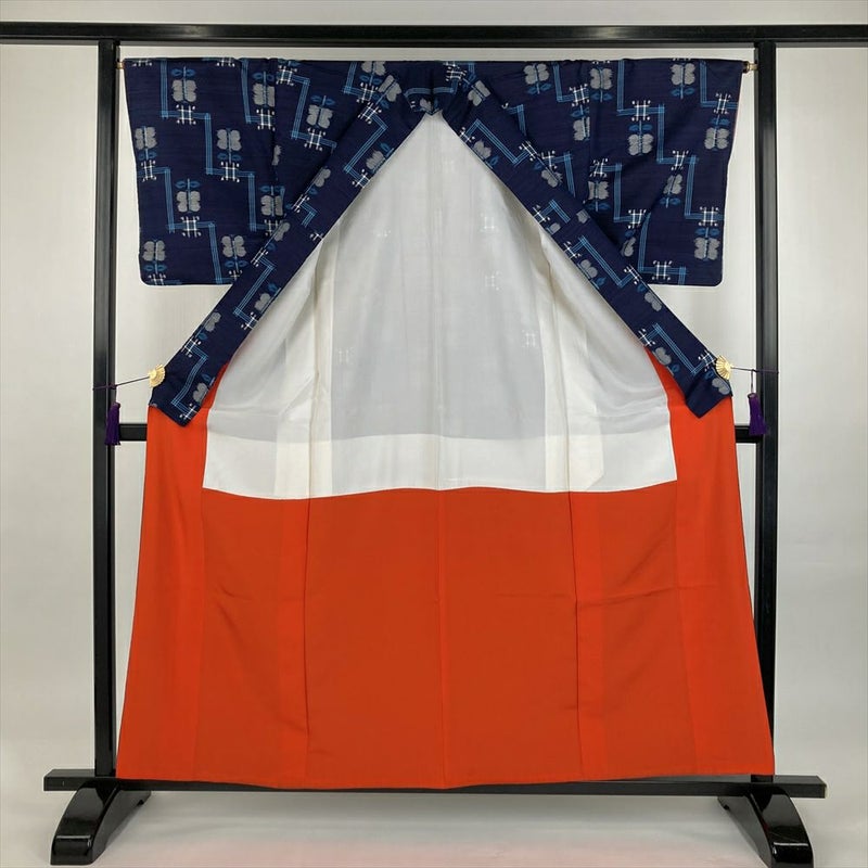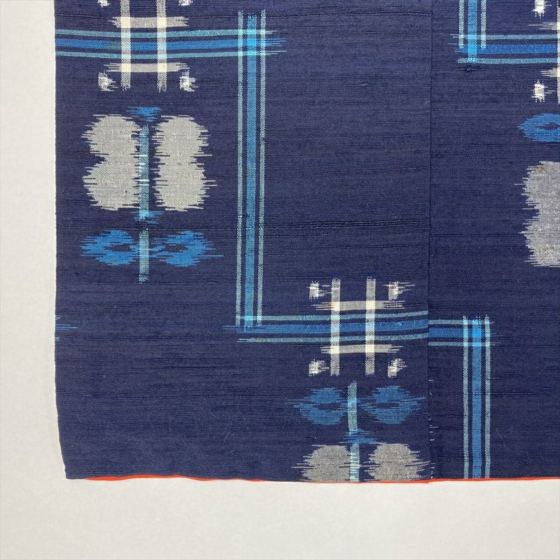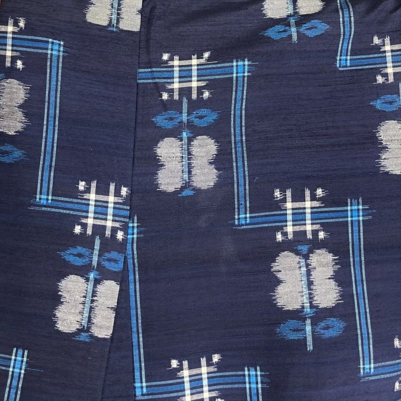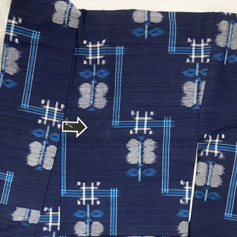 紬は、あらかじめ染めた糸を、縦・横に織って模様にします。糸1本1本を染めて織り上げるため、色落ちや劣化が少なく耐久性に優れています。カジュアルシーンで着用します。保存臭がややございます。左胸、左衽、左前身に汚れがございます。