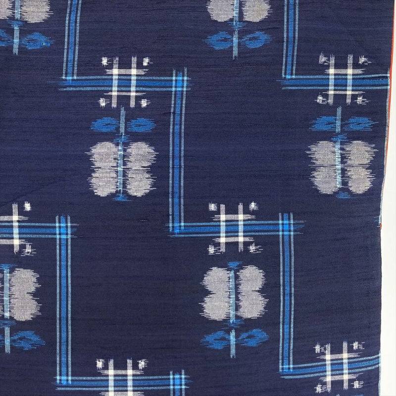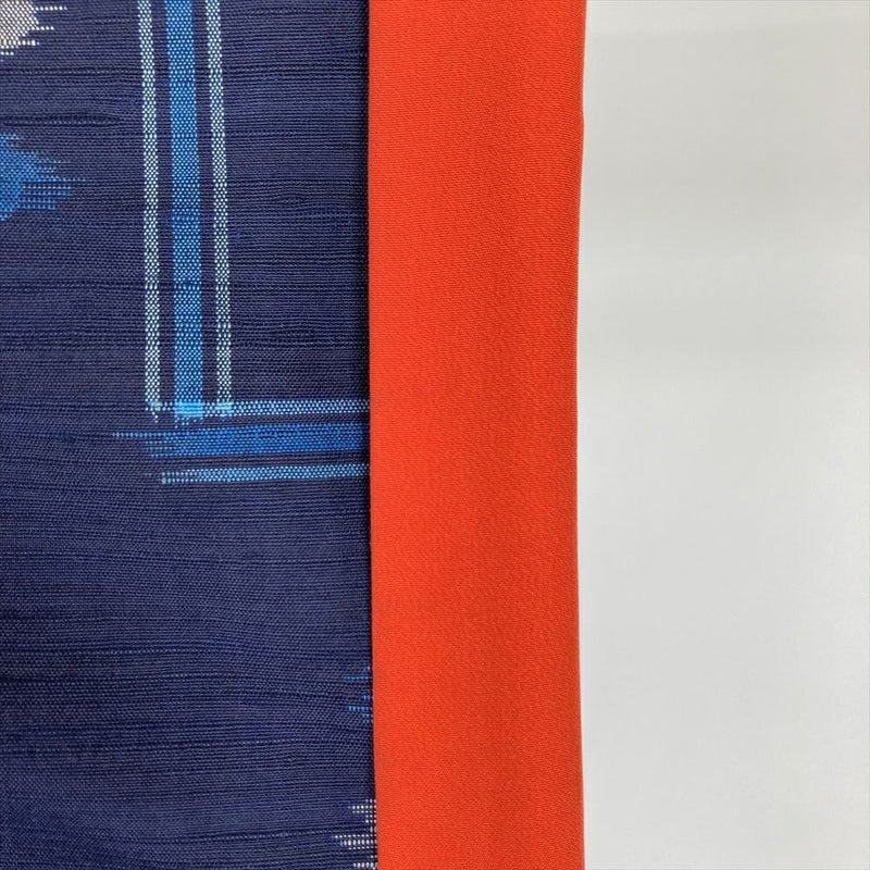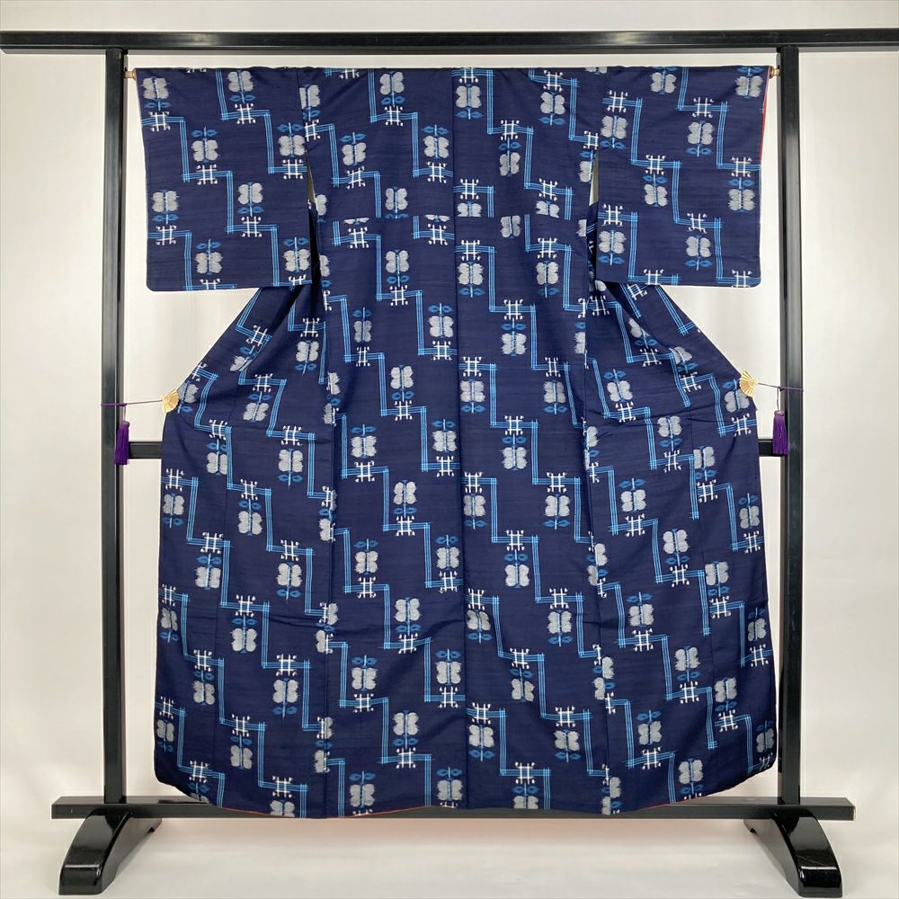 (中古)紬 紺 カジュアル 織り 違い段 遠州椿 袷 SS【身丈】154.5cm【裄丈】66.5cm