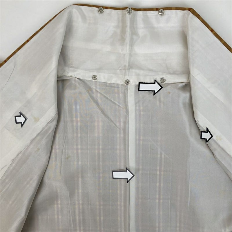 ひかえめな光沢があり、手触りや肌触りがよく軽くて丈夫です。普段着やおしゃれ着として使えるカジュアルなお着物です。胴裏にシミ汚れがございます。保存臭がややございます。