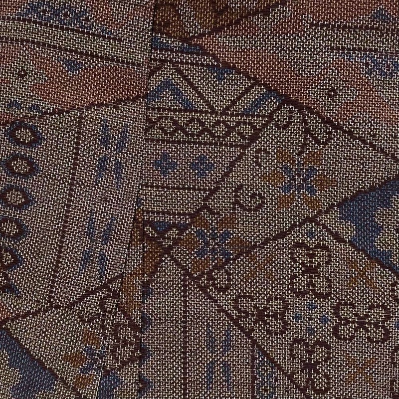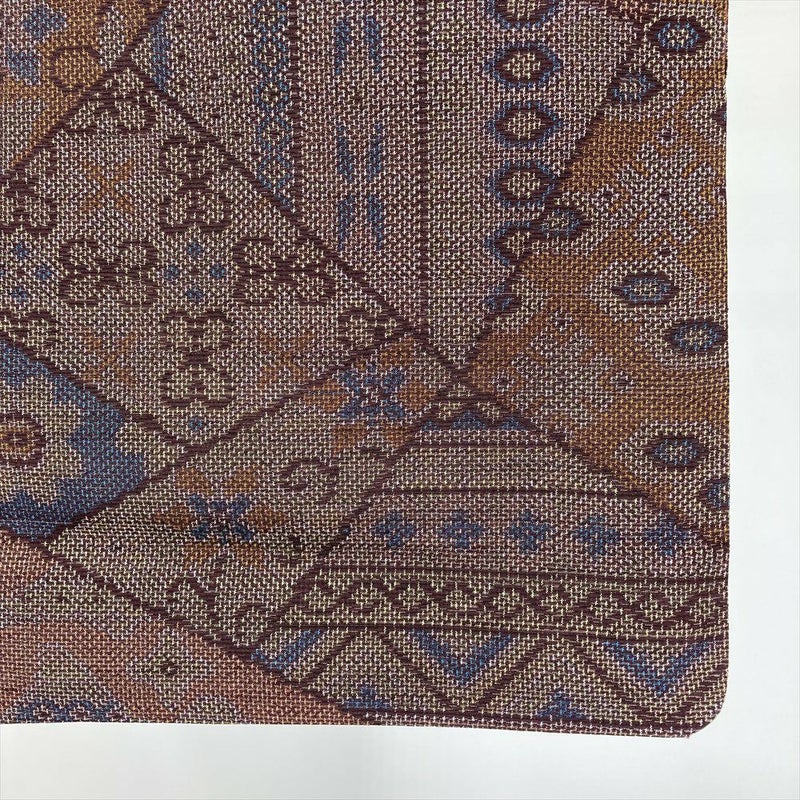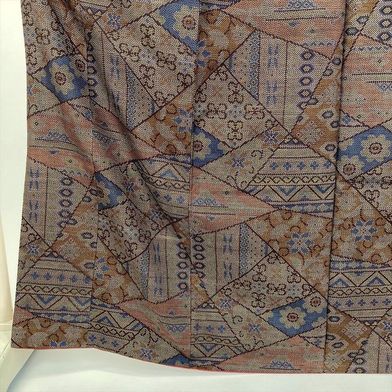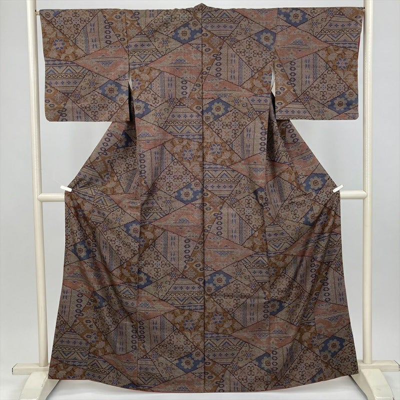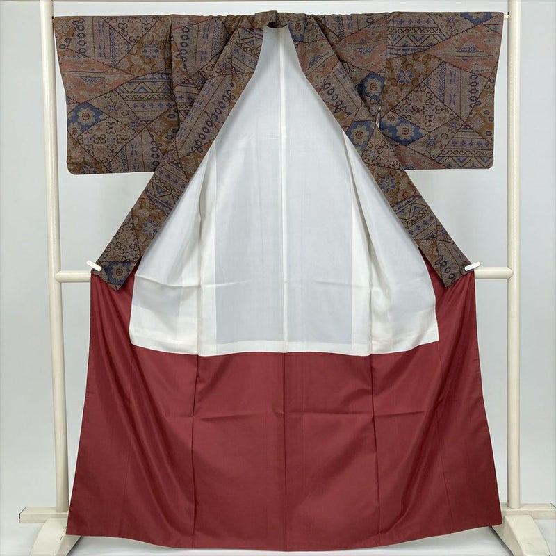 (中古) 紬 茶 カジュアル 切り嵌め調 袷 絹【身丈】159cm【裄丈】67cm