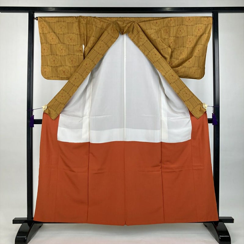 【色柄】鬱金 黄土色 カジュアル 織り 変わり市松 梅