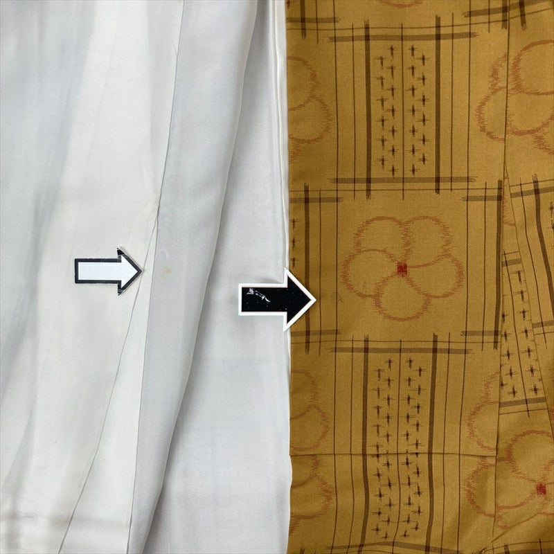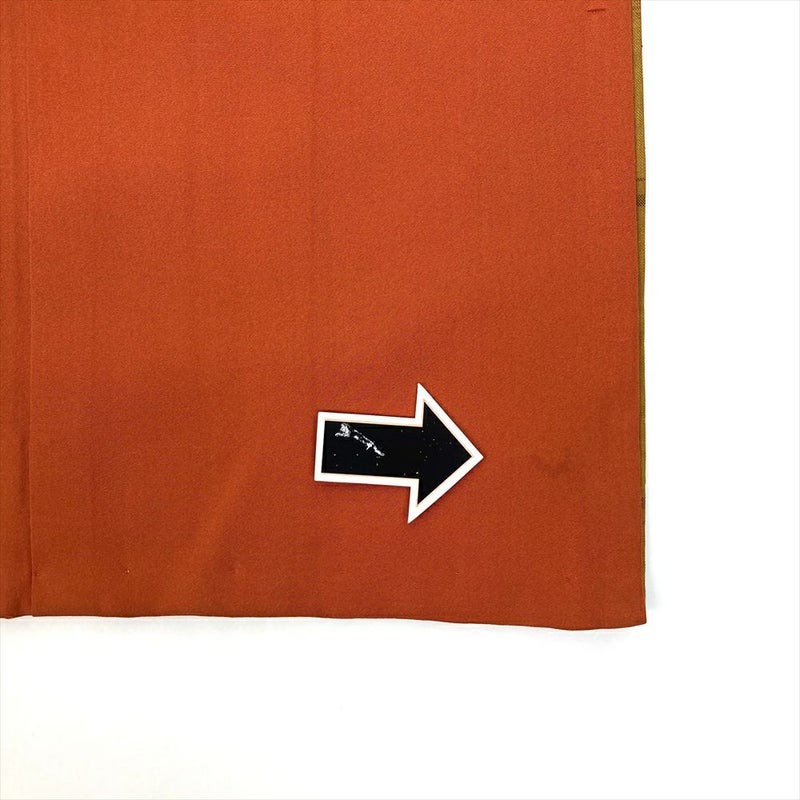 ひかえめな光沢があり、手触りや肌触りがよく軽くて丈夫です。普段着やおしゃれ着として使えるカジュアルなお着物です。すそ回しにシミ汚れがございます。保存臭がややございます。右おくみ近く裏,左衿表にシミあり。