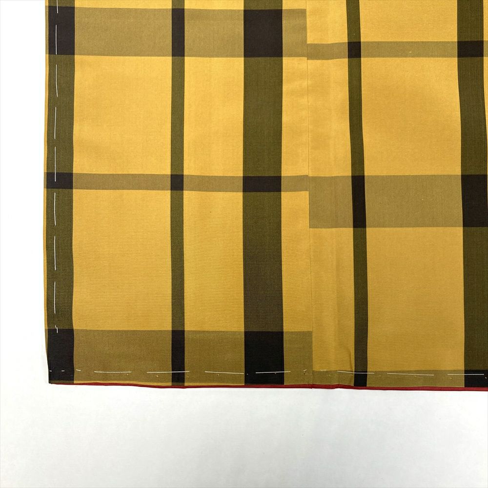 (中古)紬 黄色 カジュアル 変わり格子 袷 M【身丈】160.5cm【裄丈】64.5cm