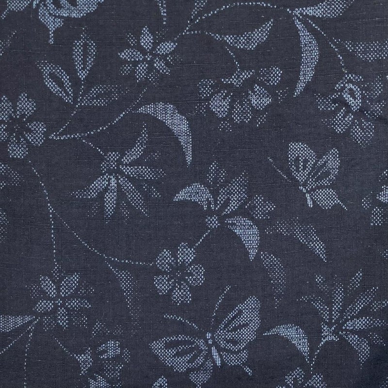 【色柄】鉄紺色 カジュアル 花葉 蝶が舞う