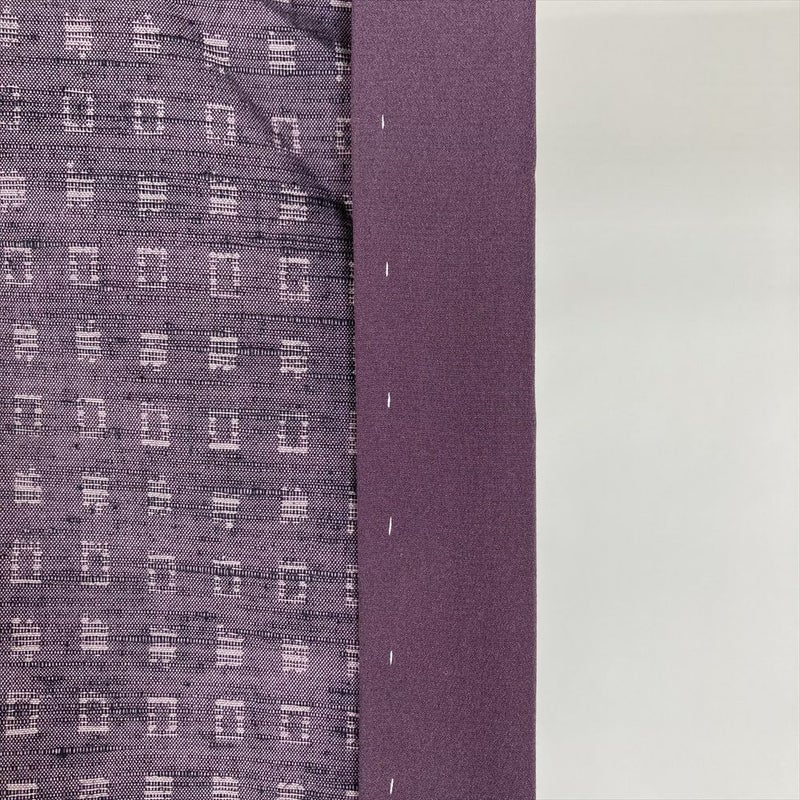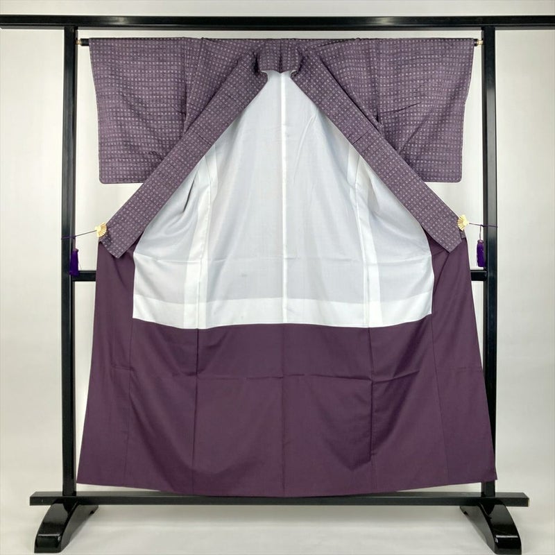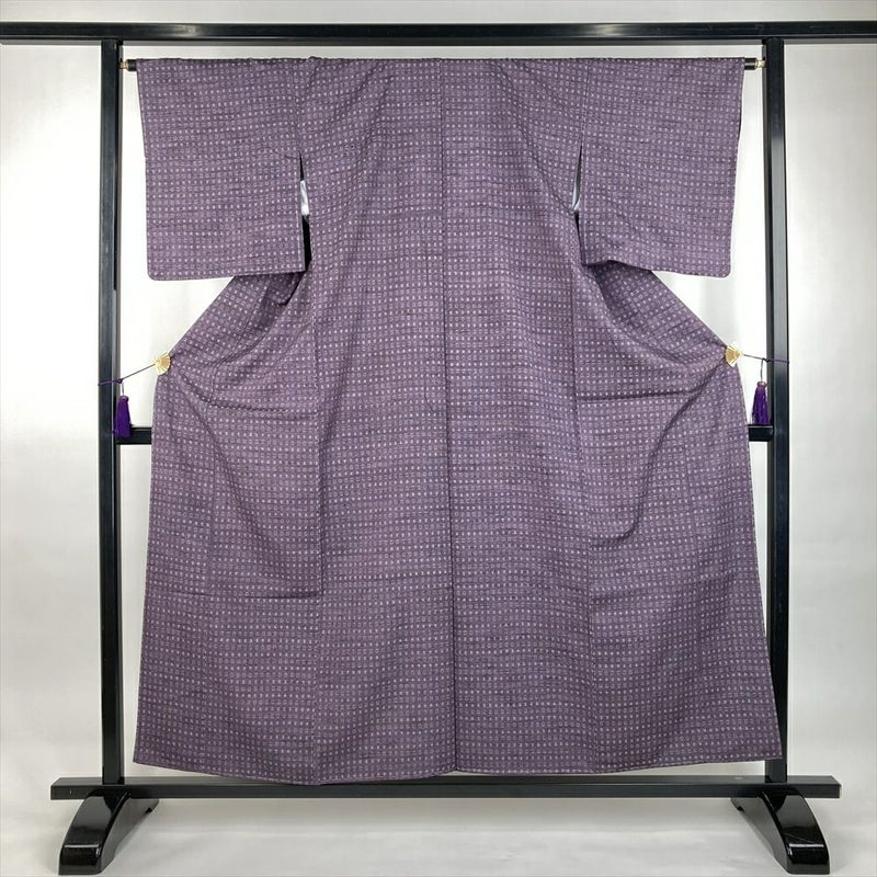 (中古)紬 紫 カジュアル 織り 四角 袷 SS【身丈】154cm【裄丈】64.5cm