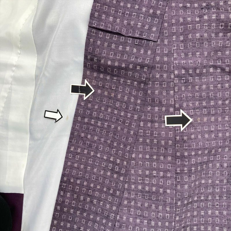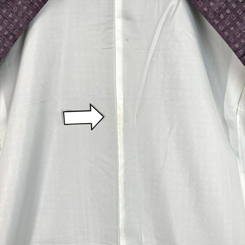 紬は、あらかじめ染めた糸を、縦・横に織って模様にします。糸1本1本を染めて織り上げるため、色落ちや劣化が少なく耐久性に優れています。カジュアルシーンで着用します。胴裏にシミ汚れが点在、左右後身にシミ汚れがございます。左右袖 脇側裏にシミがございます。保存臭がややございます。しつけあり。