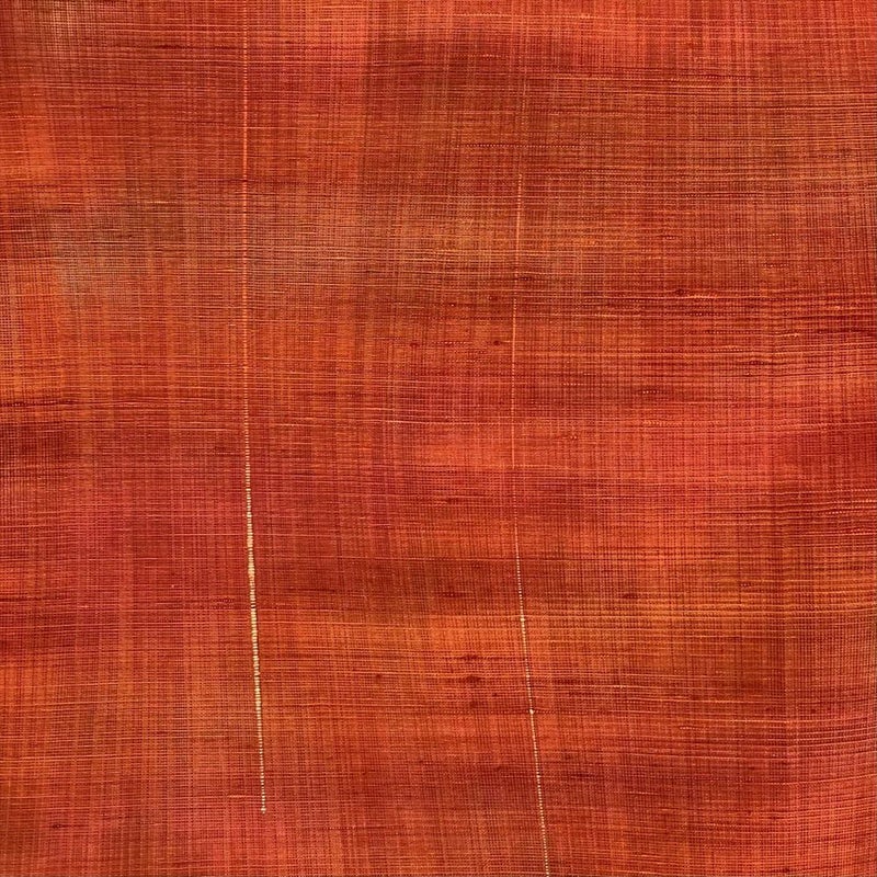 しっとりとした絹の肌触りが、大人の女性にふさわしい上品さを醸し出します。オレンジ色の濃淡で織り上げられたシンプルなデザインは、合わせる帯によって様々な表情を見せてくれます。