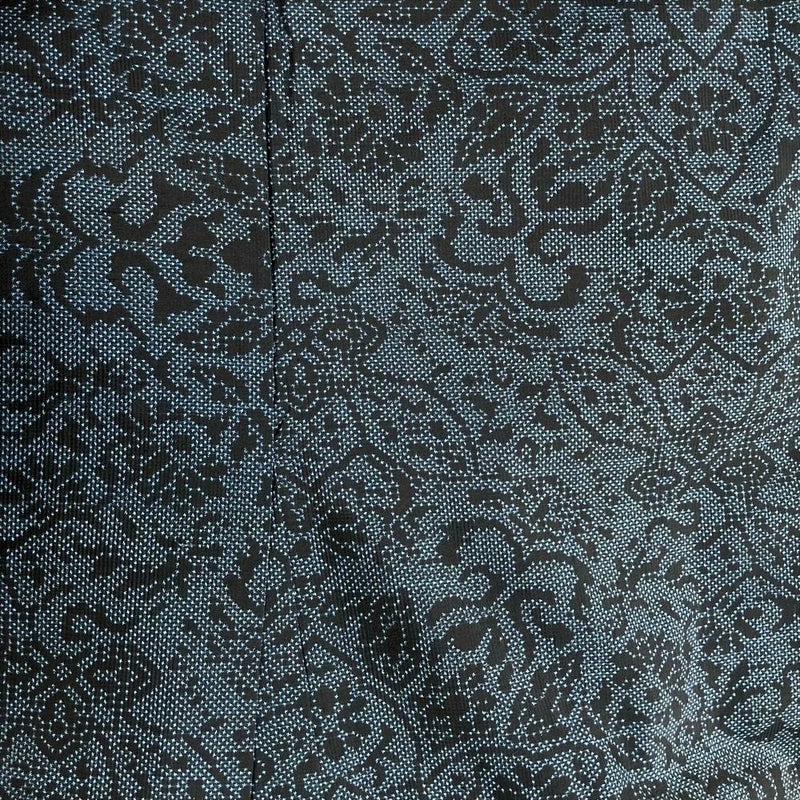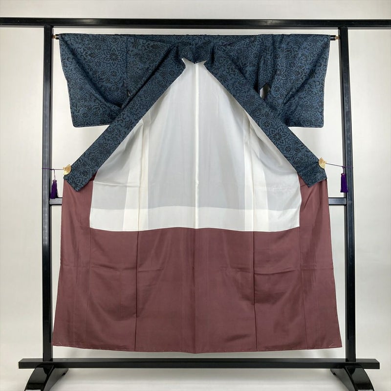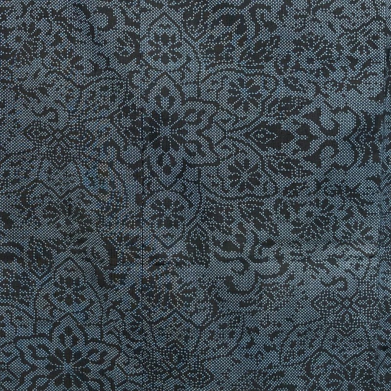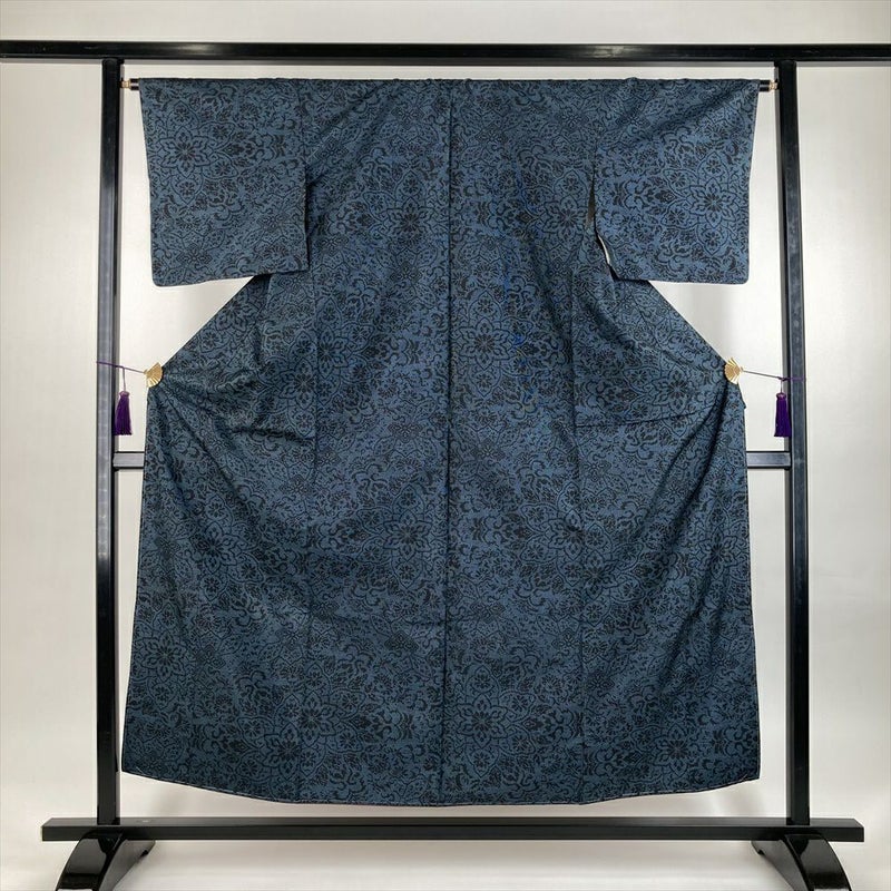 (中古)紬 黒 薄藍 カジュアル 織り 5マルキ 華文 袷【身丈】151.5cm【裄丈】65cm