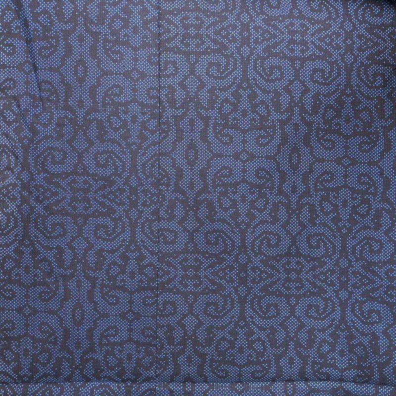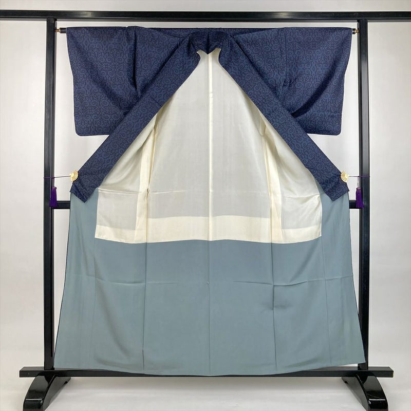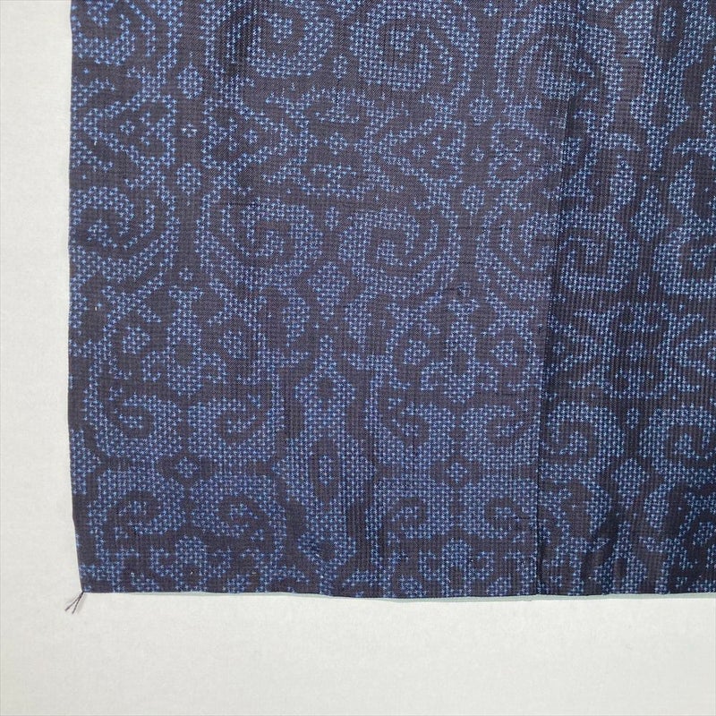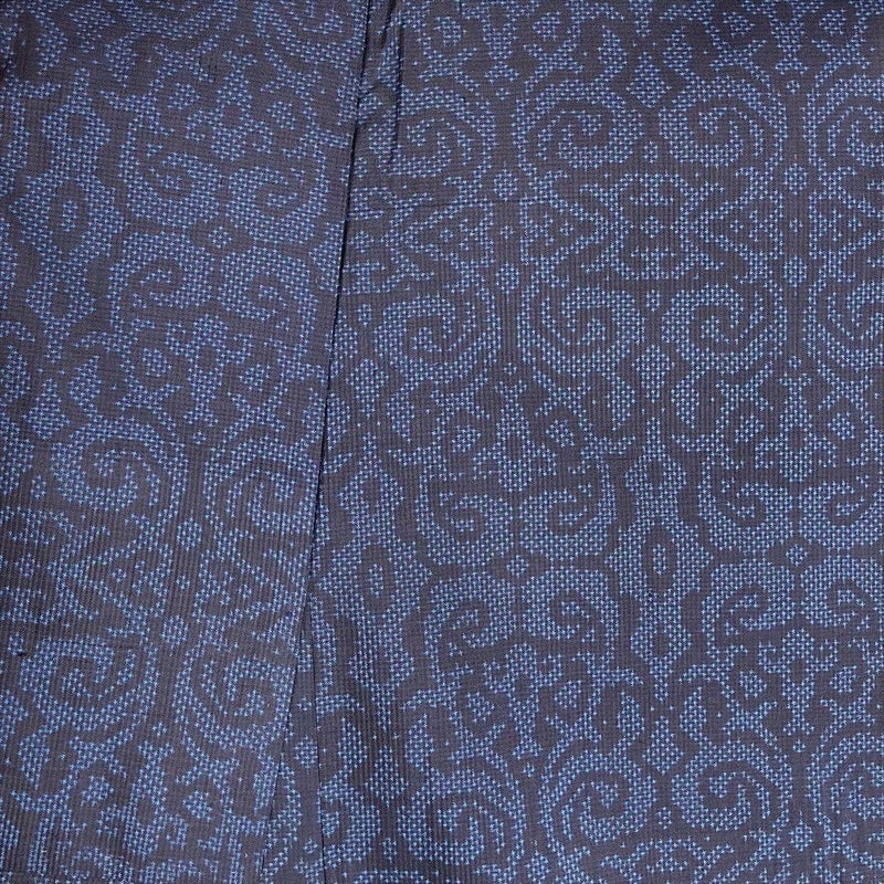(中古)紬 紺 カジュアル 織り 5マルキ 蔓草 オリエンタル 袷 S【身丈】157cm【裄丈】64cm