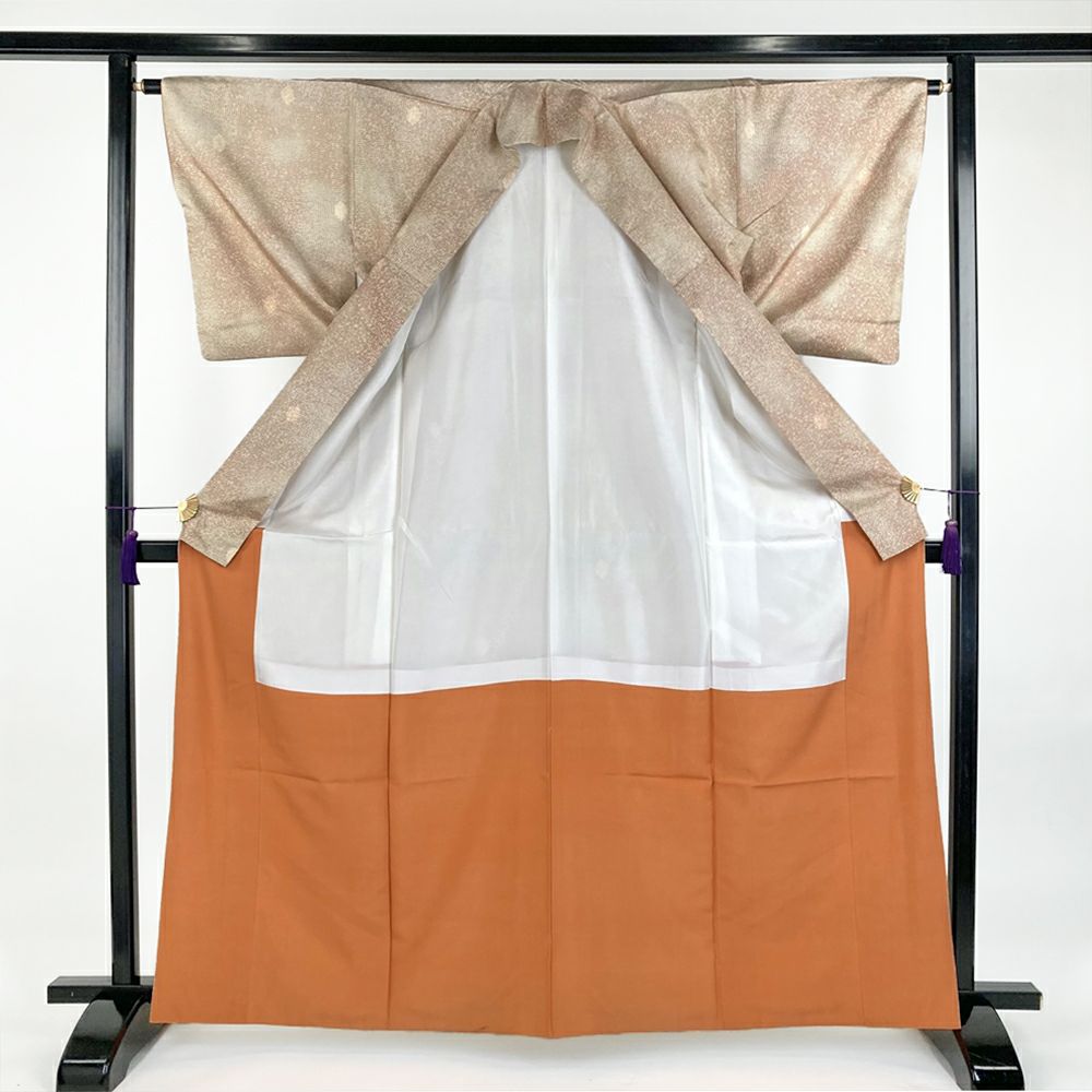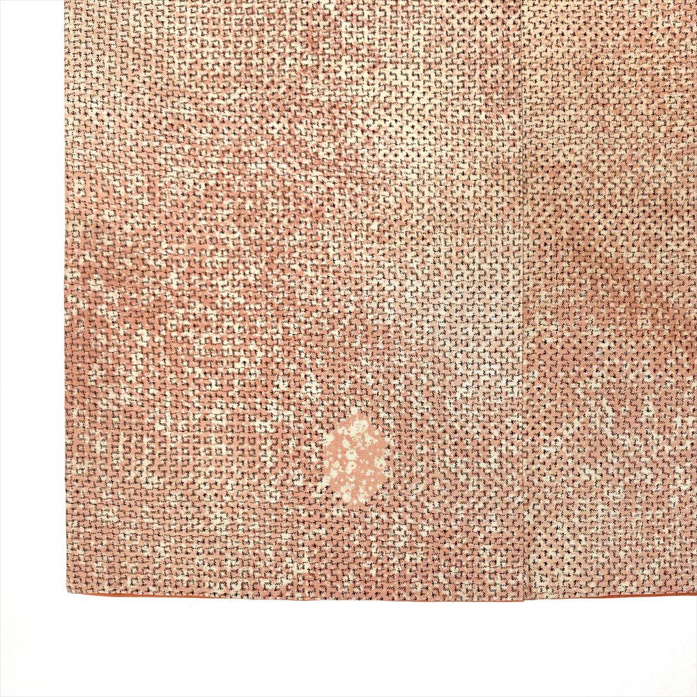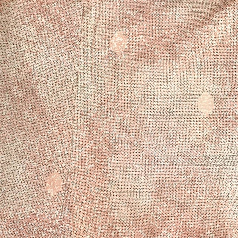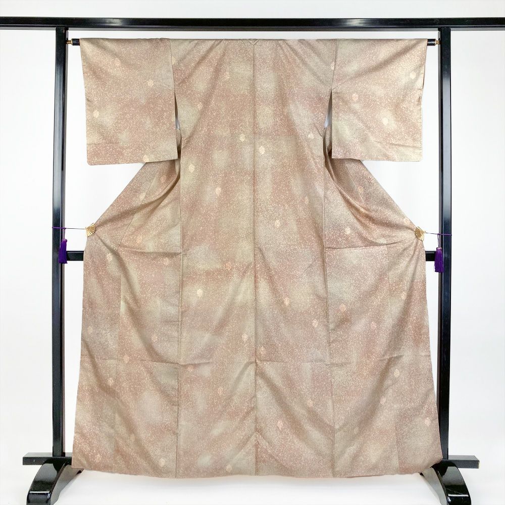 ひかえめな光沢があり、手触りや肌触りがよく軽くて丈夫です。普段着やおしゃれ着として使えるカジュアルなお着物です。保存臭がややございます。裾回し下にシミ汚れがございます。