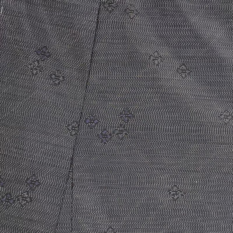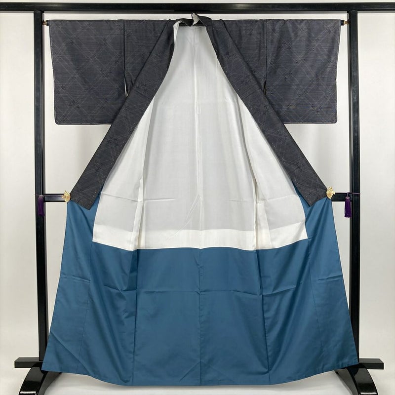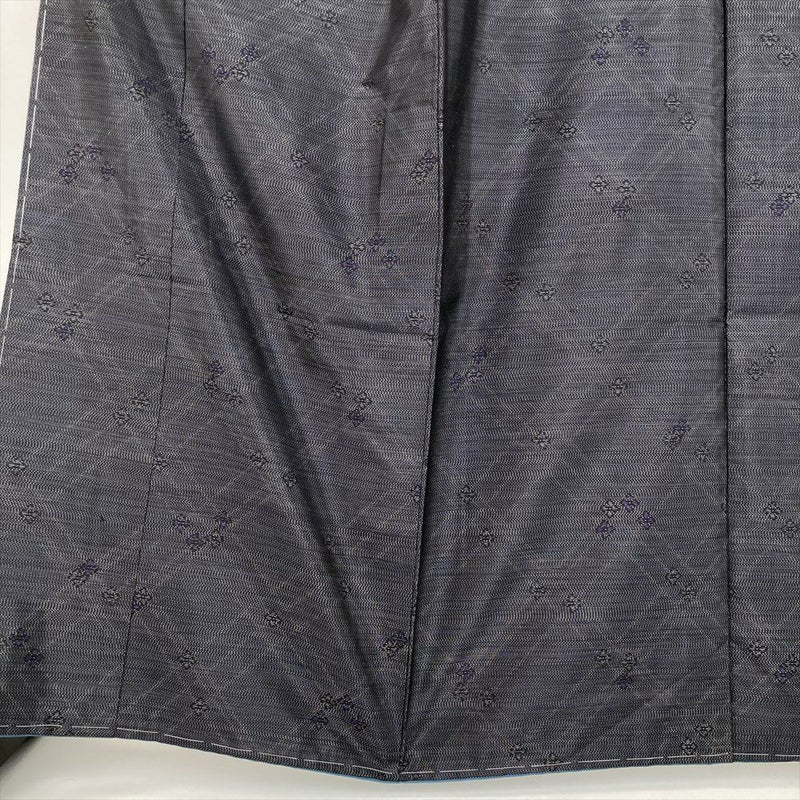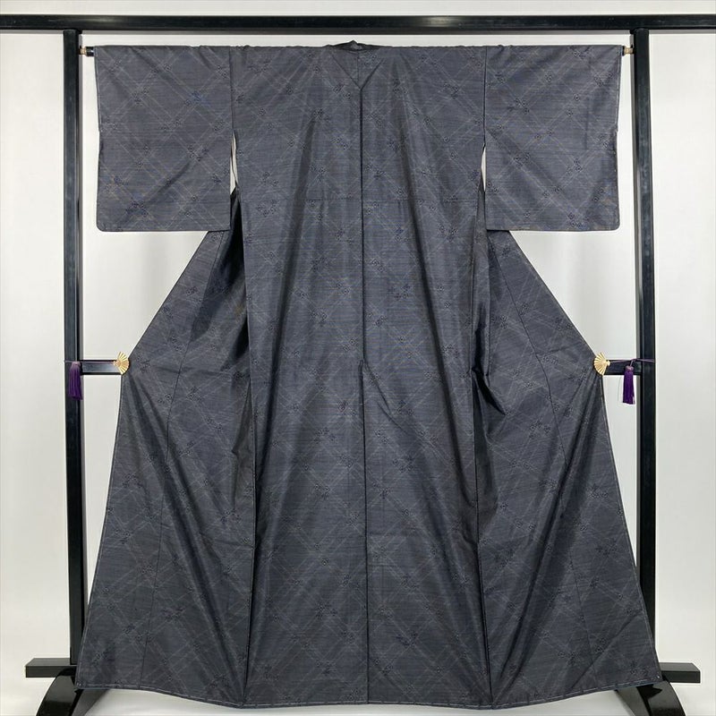 (中古) 大島紬 グレー 黒色 カジュアル 横双 斜め格子 小花 袷【身丈】158cm【裄丈】65.5cm