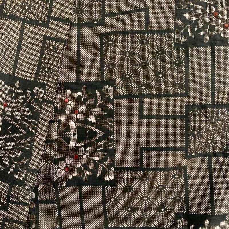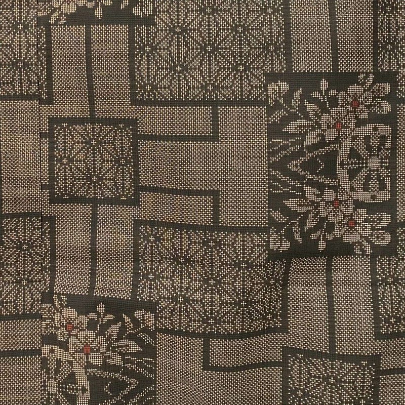 【色柄】茶 麻の葉 花車 幾何学模様