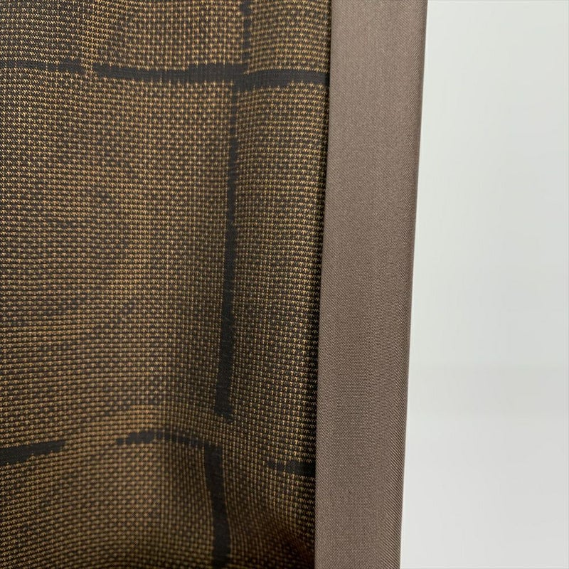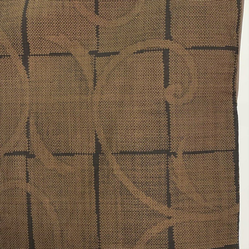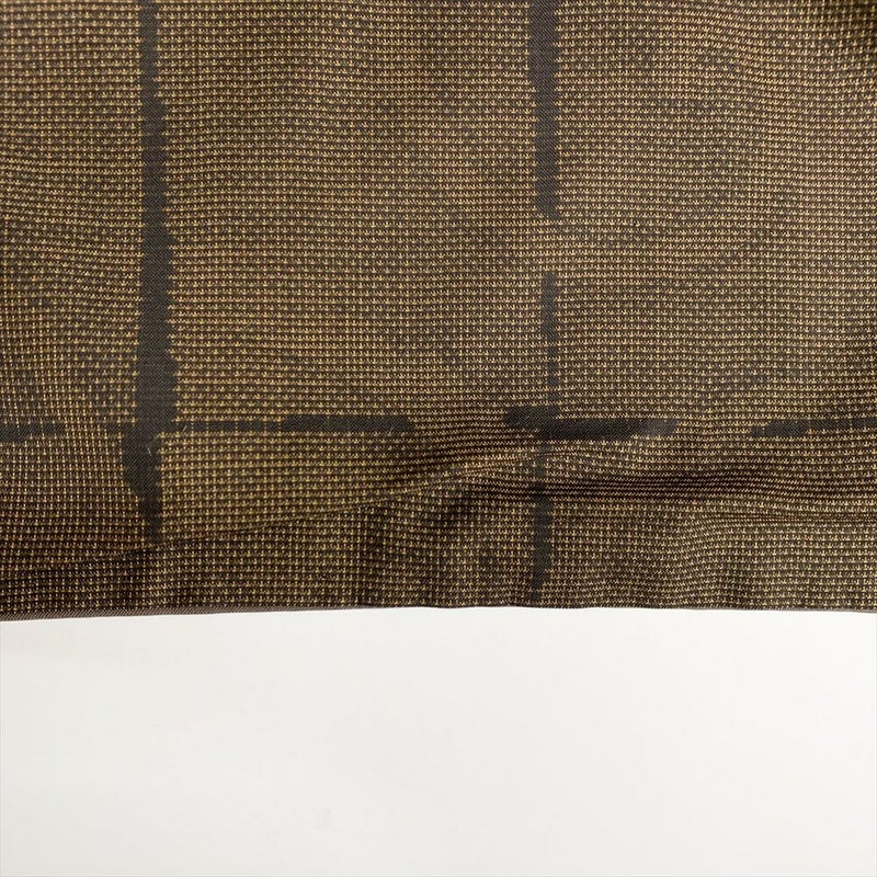 茶色地に蔦のデザインと、黒の格子柄が織られた大島紬です。タグあります。お出かけなどカジュアルなシーンでお召しいただけます。