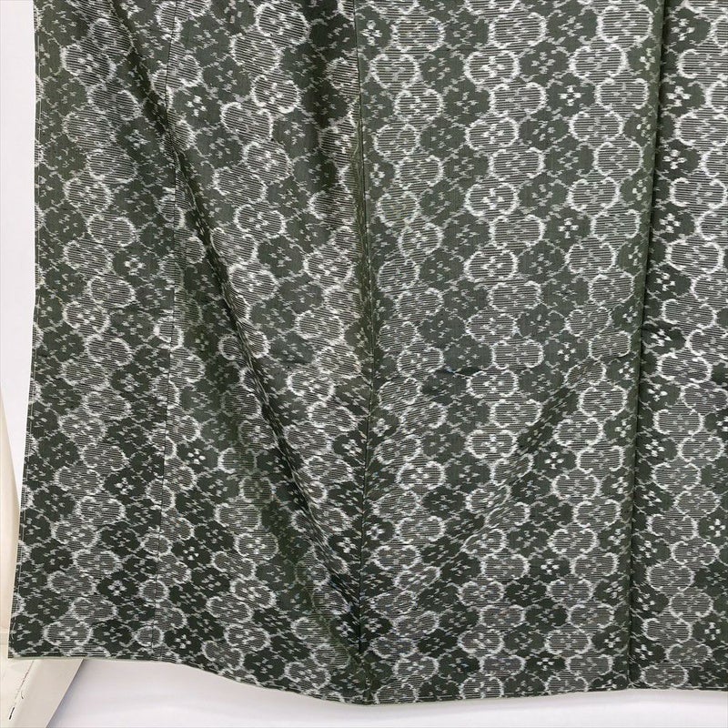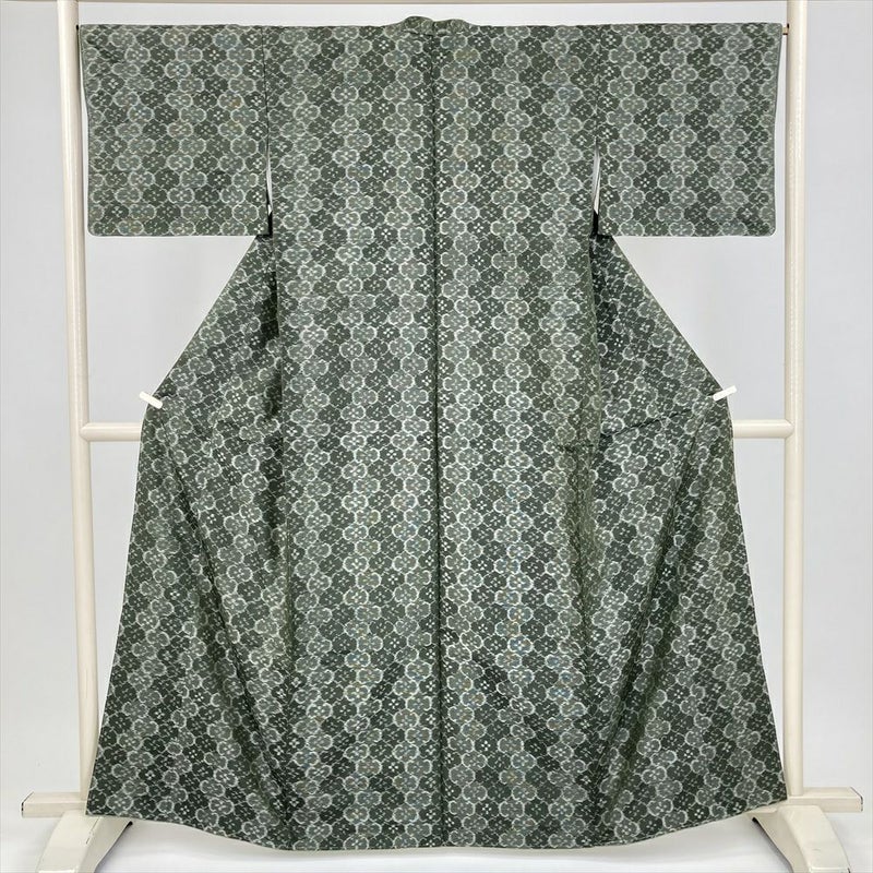 (中古) 紬 緑 カジュアル 梅 袷 絹【身丈】157cm【裄丈】67cm