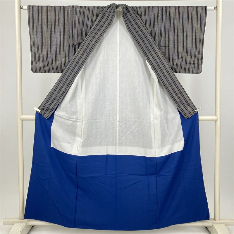 (中古) 紬 グレー カジュアル 縞 袷 絹【身丈】154cm【裄丈】62.5cm