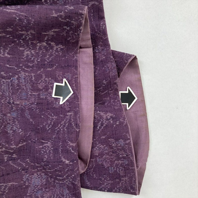 落ち着いた紫色は、上品で、大人の女性によく似合います。紬地ならではの、ざっくりとした風合いが、優雅な雰囲気をさらに引き立てます。普段使いはもちろん、ちょっとしたお出かけにもぴったりです。