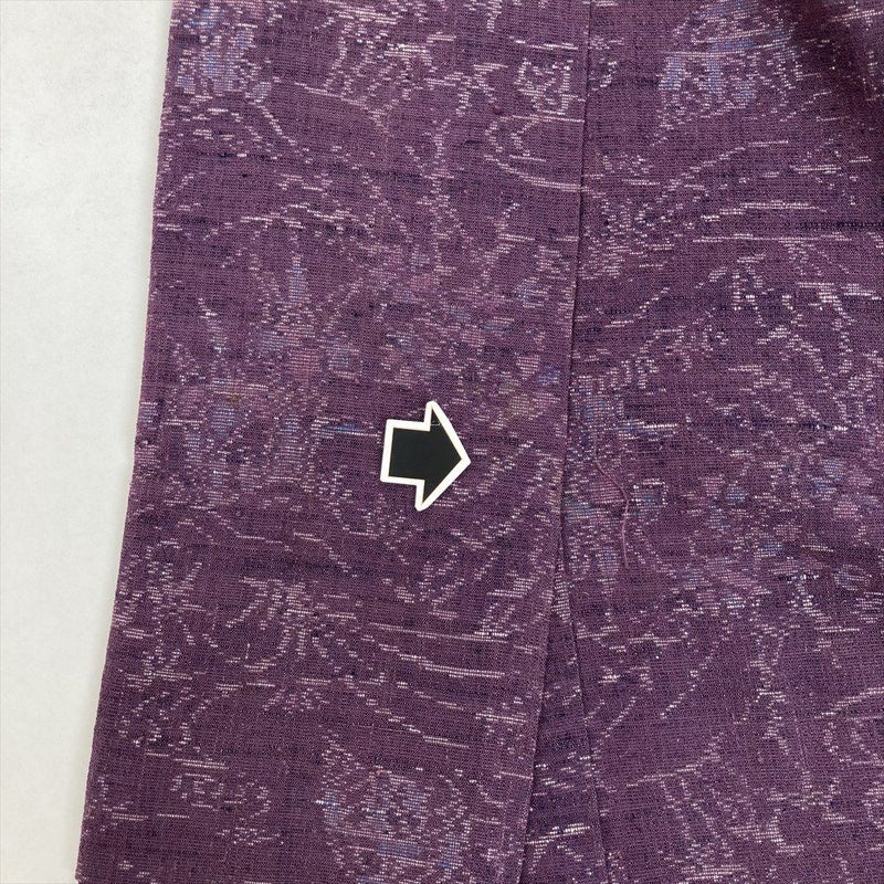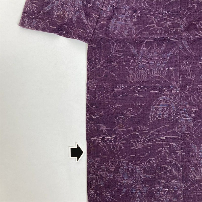 (中古) 紬 紫色 カジュアル 紬 庭園 四季花 袷 絹 【身丈】154.5cm【裄丈】67.5cm