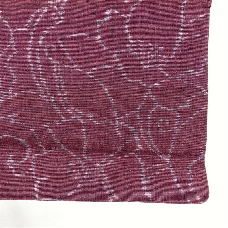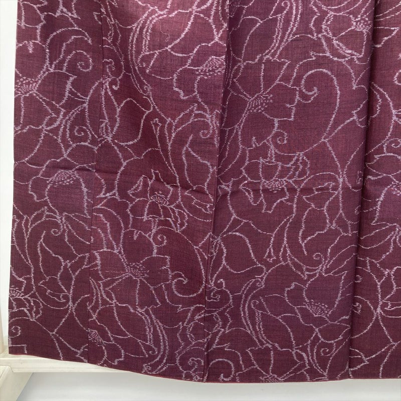 (中古) 紬 赤紫 カジュアル 花草 袷 絹【身丈】154cm【裄丈】65cm