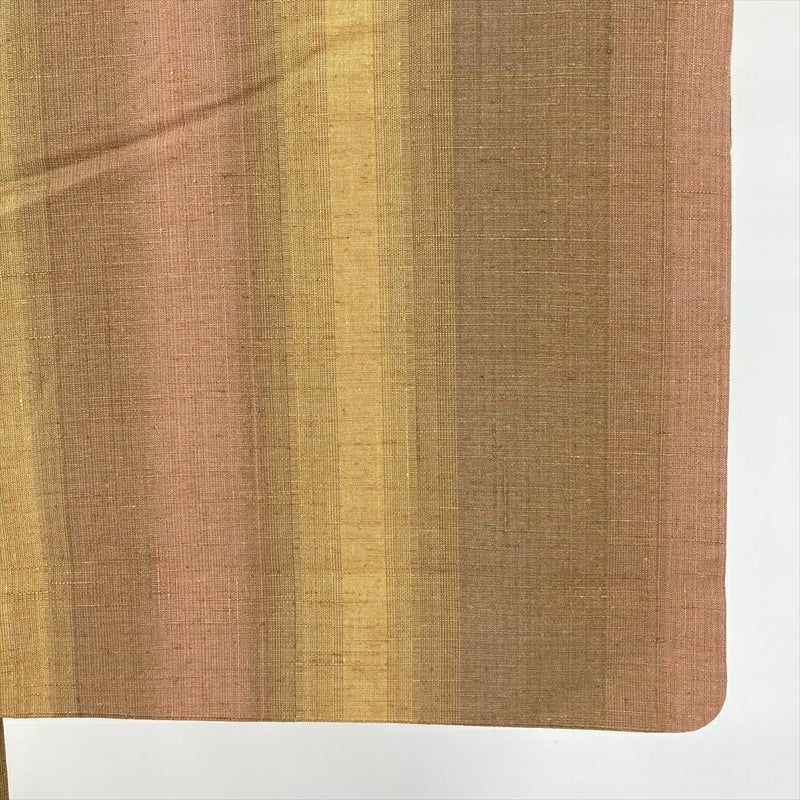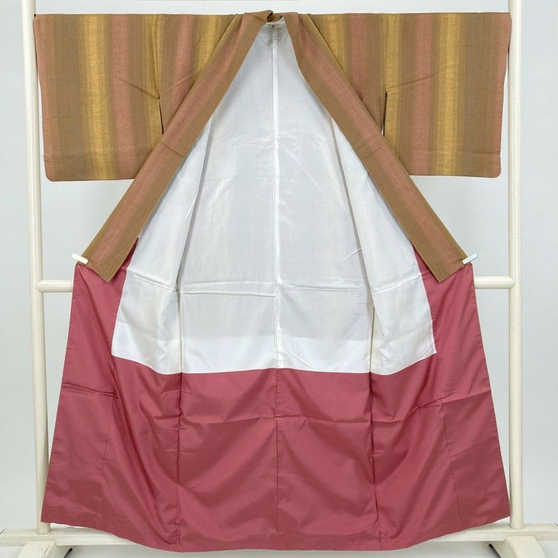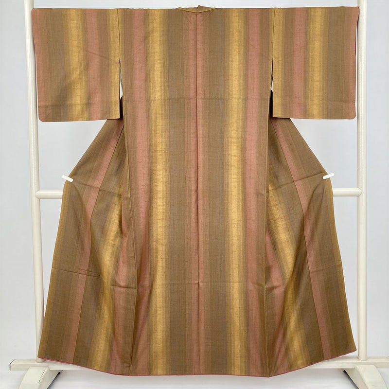 (中古) 紬 茶 黄色 カジュアル 縞 袷 絹【身丈】150.5cm【裄丈】69cm