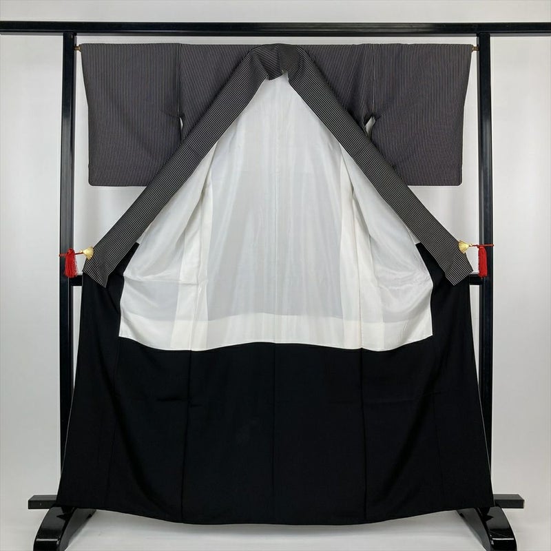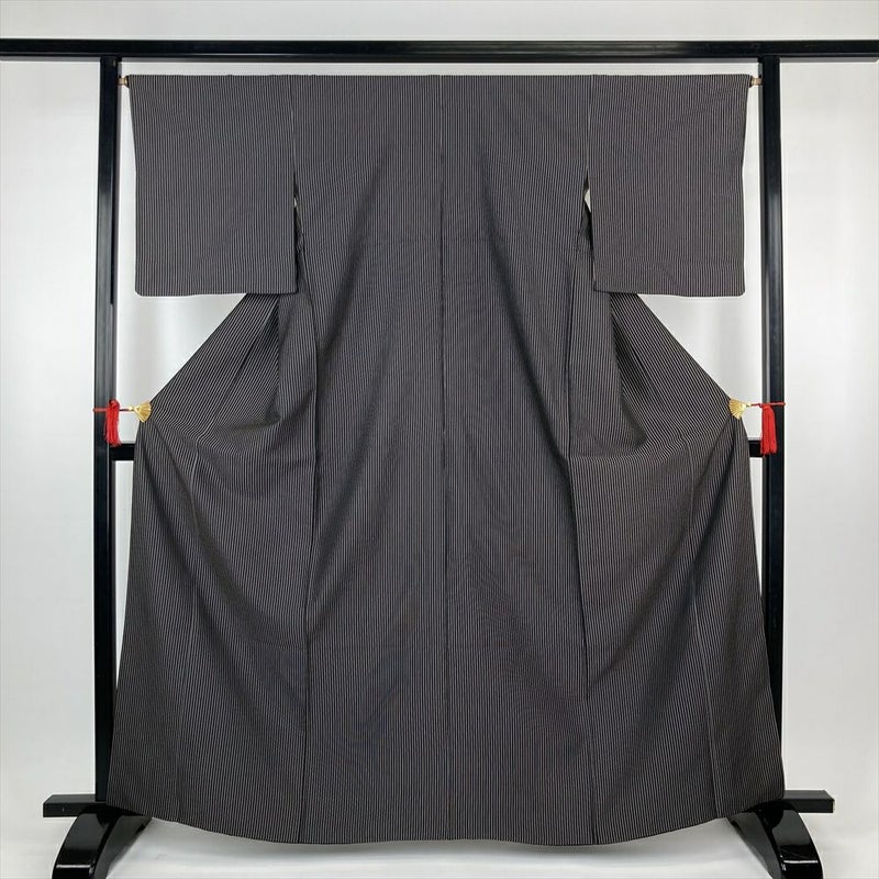 (中古)紬 黒 カジュアル 縞 袷 M【身丈】160.5cm【裄丈】65.5cm