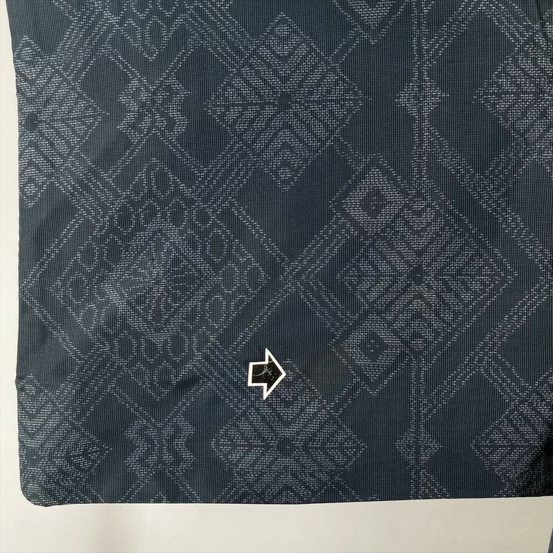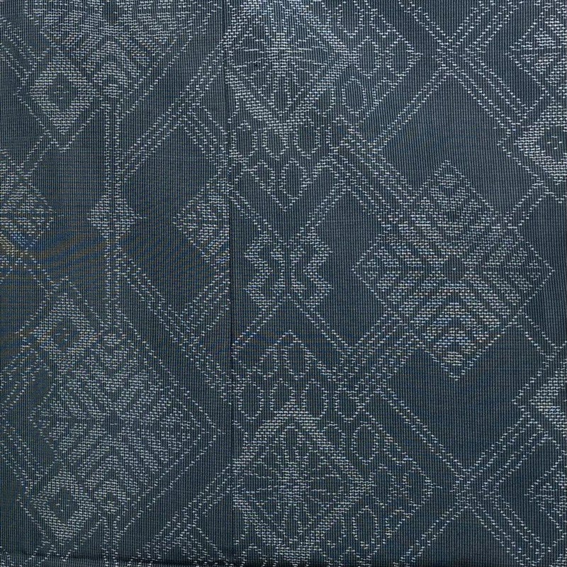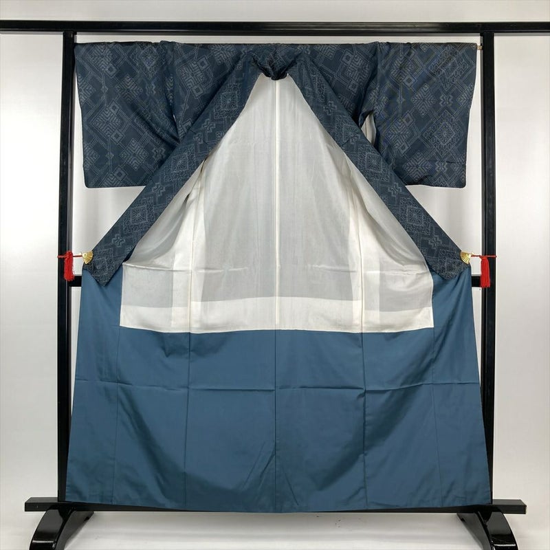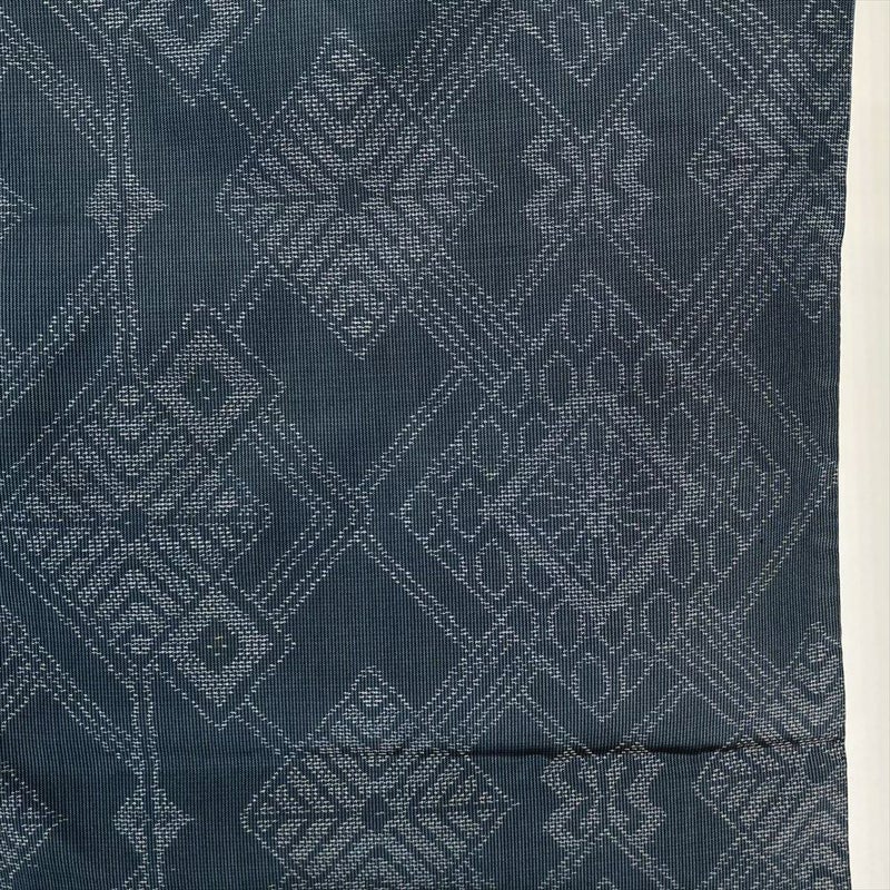(中古)大島紬 紺 カジュアル 蜀江文 幾何学文様 横双 袷 S【身丈】157.5cm【裄丈】68.5cm