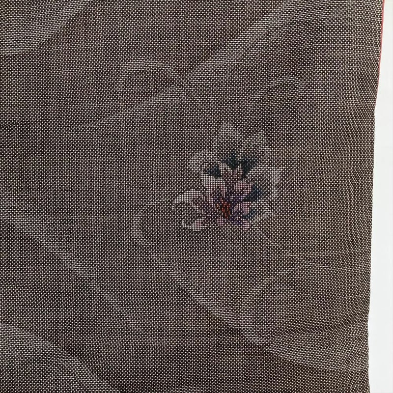 (中古)大島紬 こげ茶 カジュアル 5マルキ 花柄 袷【身丈】159.5cm【裄丈】67cm