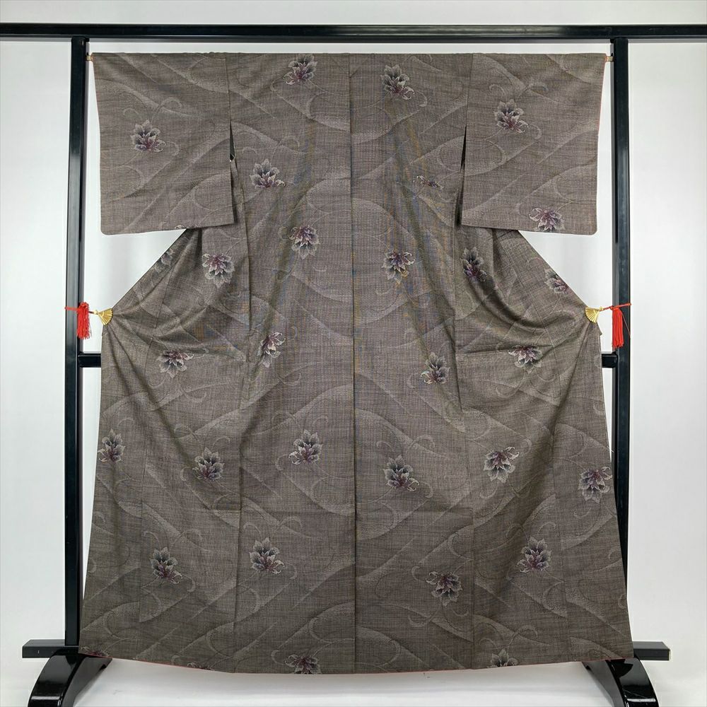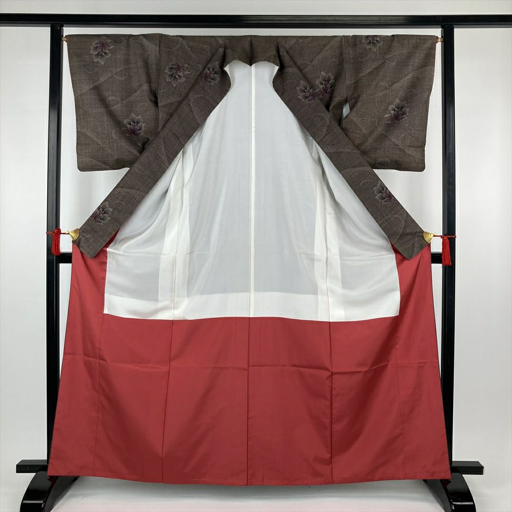こげ茶色の落ち着いた色合いは、帯や小物のコーディネートもしやすく、お手持ちのアイテムとの組み合わせを考えるのも楽しいですね。