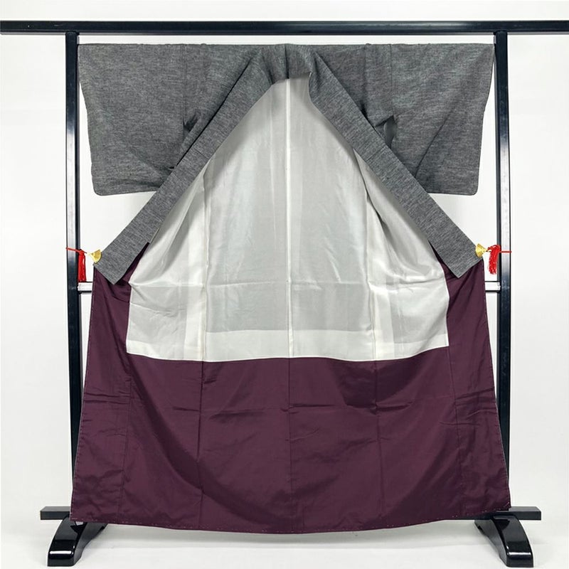 (中古)紬 グレー カジュアル 無地 袷 M【身丈】160.5cm【裄丈】67.5cm