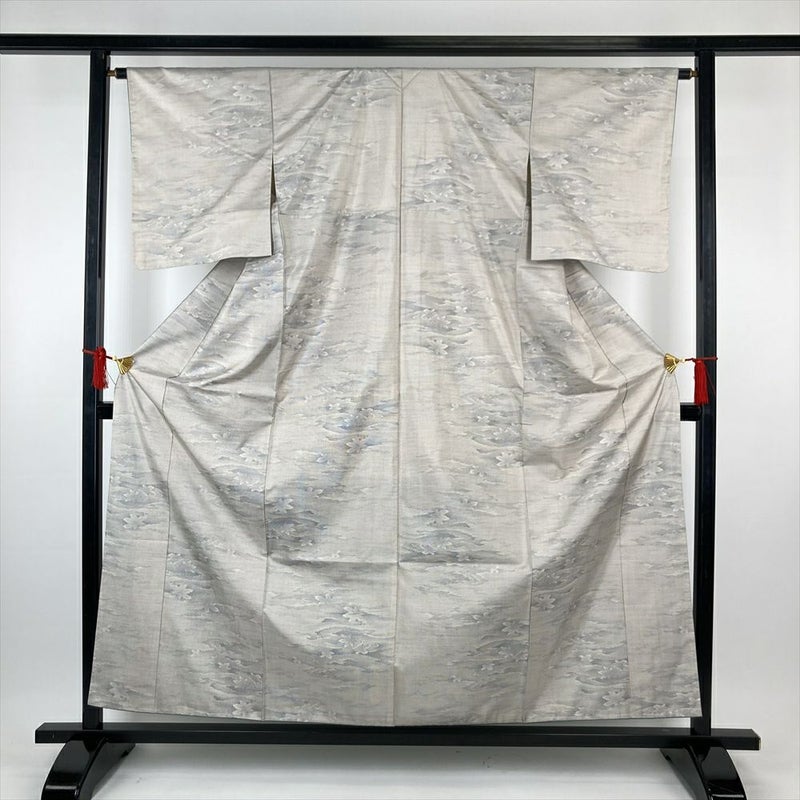(中古)大島紬 白 カジュアル 流水 紅葉 袷 S【身丈】155.5cm【裄丈】63.5cm