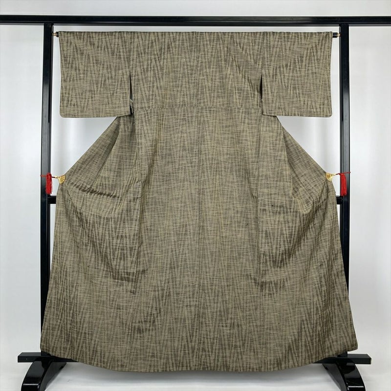 (中古)紬 ベージュ カジュアル ギザギザ模様 繰り返し 袷 S【身丈】158.5cm【裄丈】65.5cm