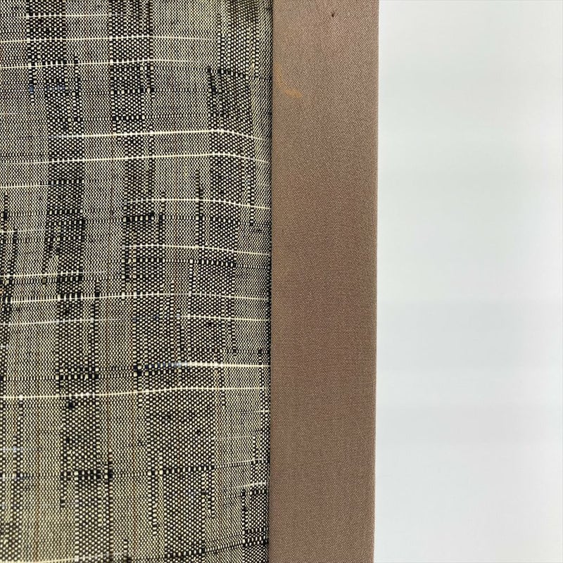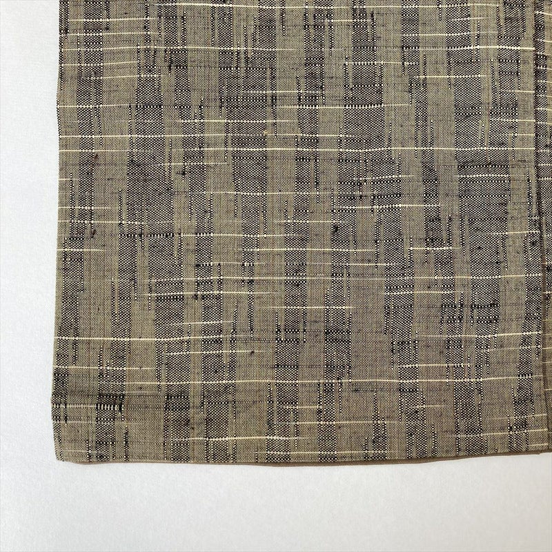 こちらの紬は、落ち着いた杢目模様が特徴。杢目とは、木材の年輪のような模様のこと。紬に杢目模様を織り込むことで、上品でありながらも、どこか温かみのある雰囲気に仕上がっています。