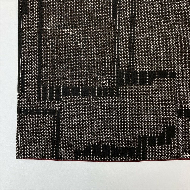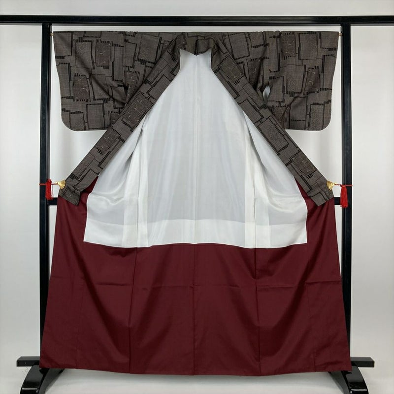 【色柄】茶 カジュアル 紬 5マルキ 短冊 蔓 七宝