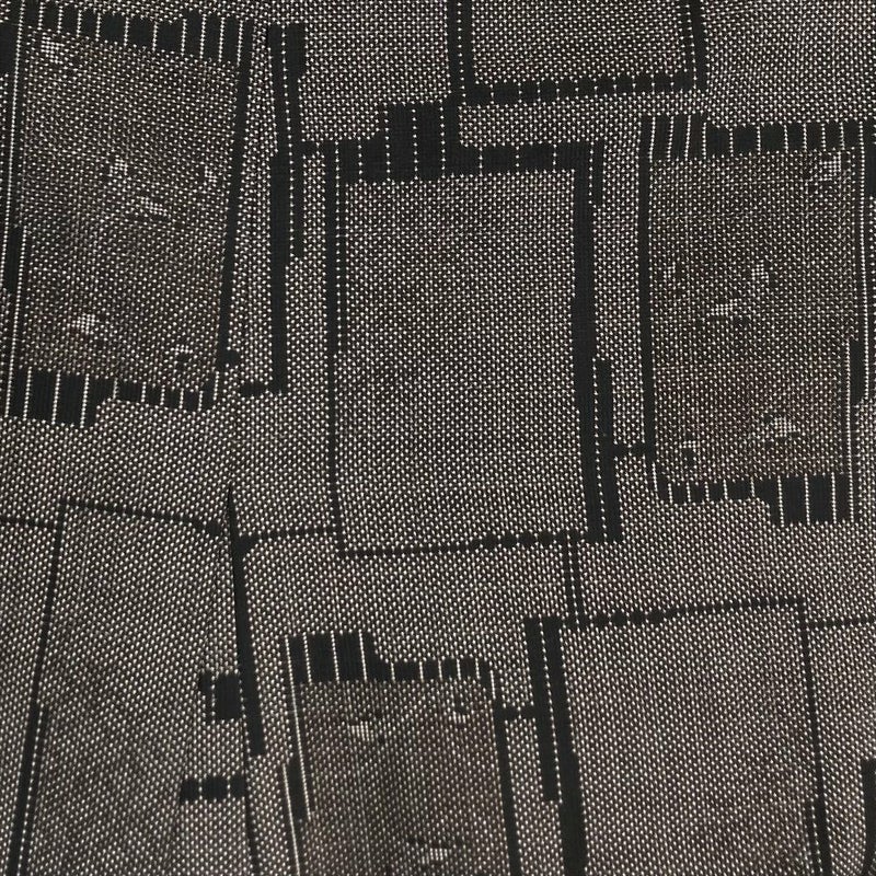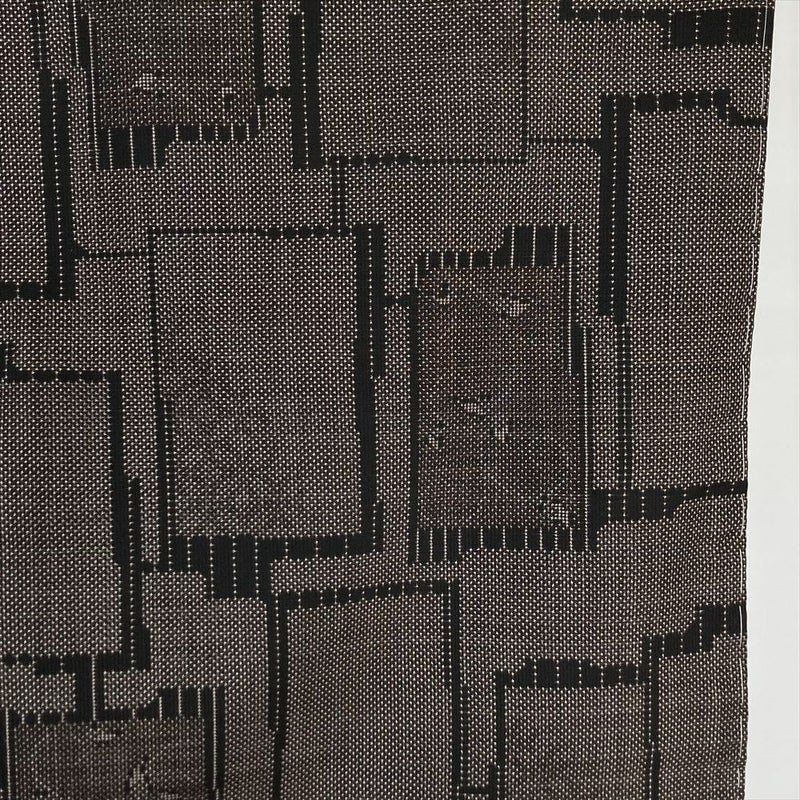 普段着としても楽しめる、大島紬のご紹介です。落ち着いた茶色地に、短冊文様、唐草と七宝柄が織り込まれており、上品でありながらも、普段使いしやすいデザインとなっております。