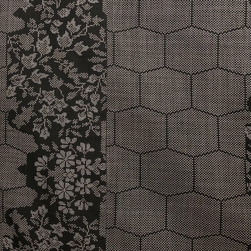 【色柄】茶 カジュアル 紬 5マルキ 亀甲繋ぎ 菊 蔦