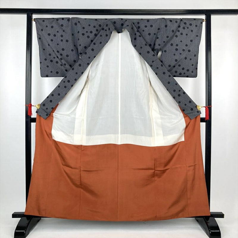 (中古)紬 黒 カジュアル 水玉 袷 S【身丈】158cm 【裄丈】65cm