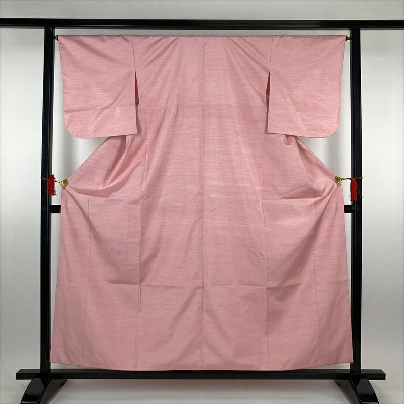 (中古)紬 ピンク カジュアル 無地 紅花 袷 SS【身丈】154cm【裄丈】66.5cm