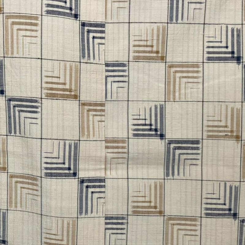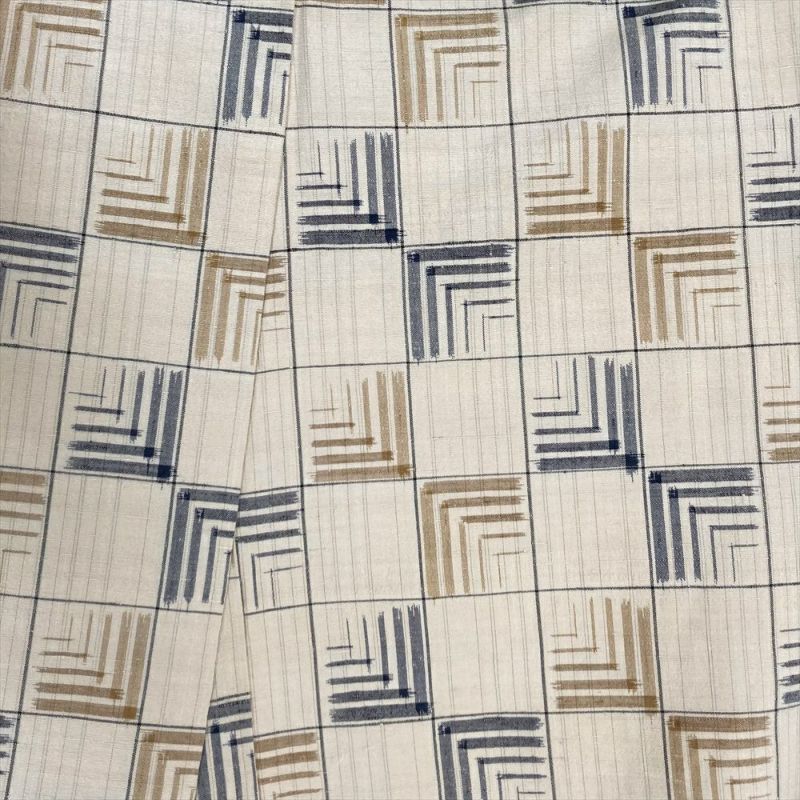 【色柄】生成り カジュアル 変わり格子 変わり縞