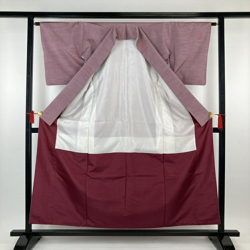 (中古)紬 赤紫 カジュアル 節紬 飛び柄 亀甲 袷 SS【身丈】153cm 【裄丈】63cm