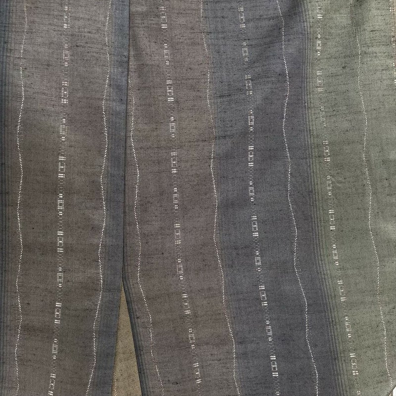 (中古)紬 グレー カジュアル 変わり縞 幾何学 グラデーション 袷 SS【身丈】152cm 【裄丈】66.5cm