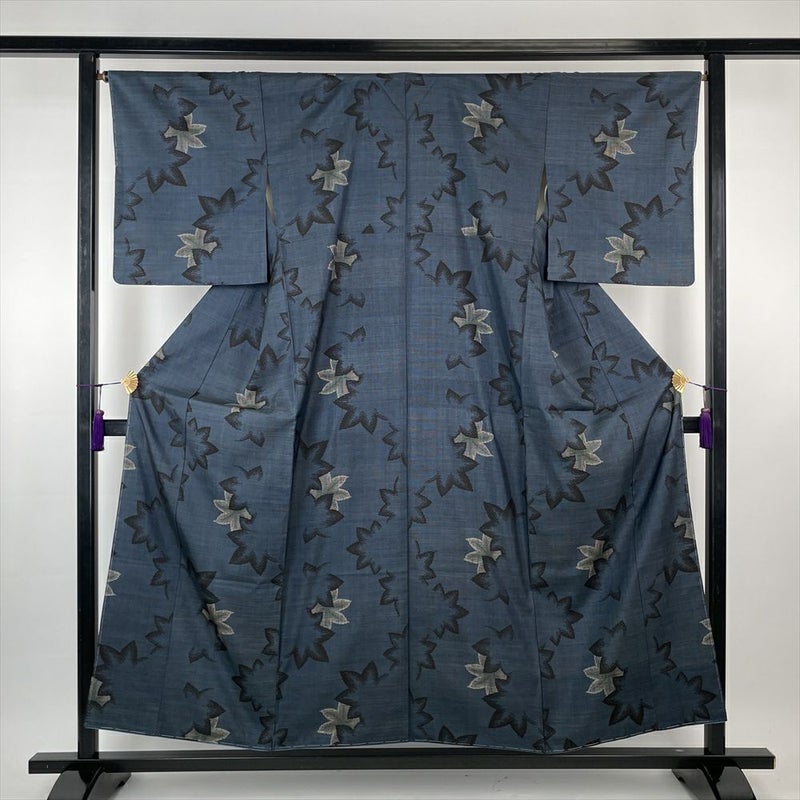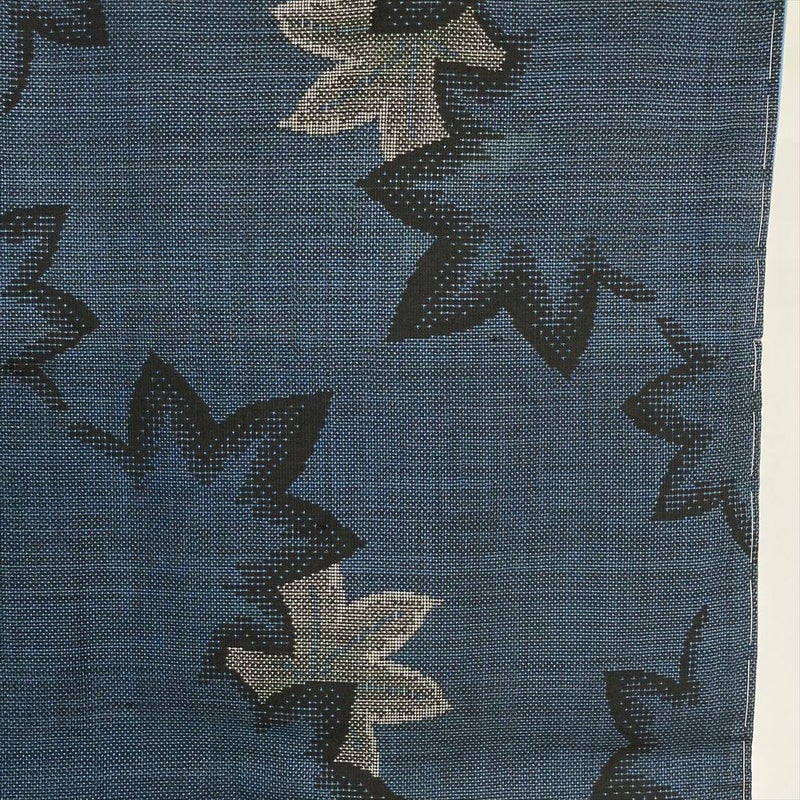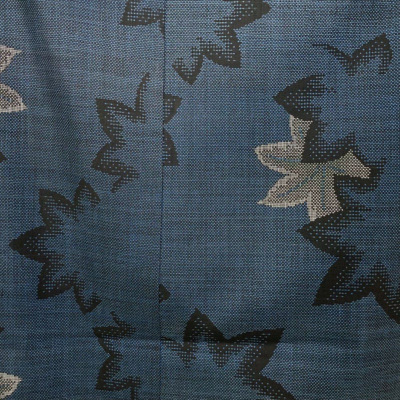 【色柄】青 カジュアル 絣 葉 紅葉
