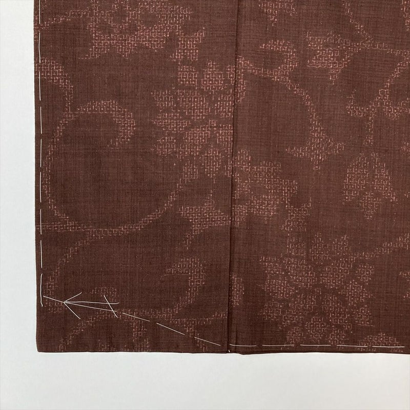 (中古)紬 赤茶 カジュアル 絣 亀甲 唐花 袷 SS【身丈】152.5cm 【裄丈】69cm