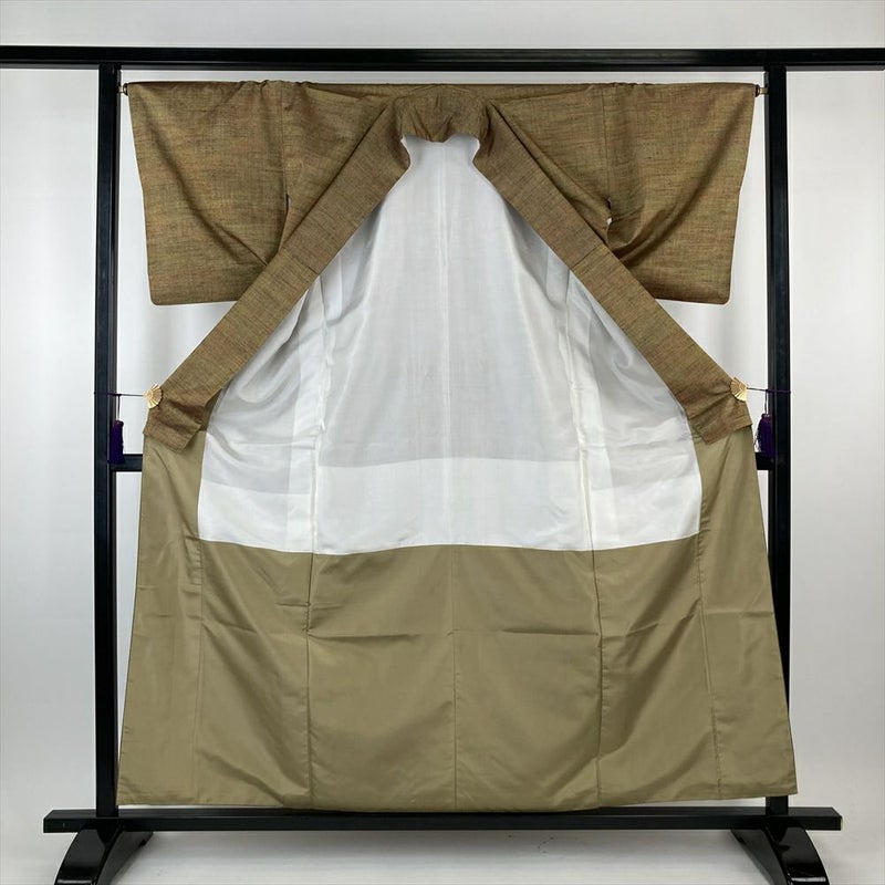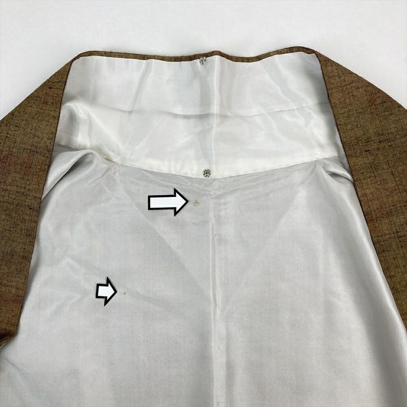 ひかえめな光沢があり、手触りや肌触りがよく軽くて丈夫です。普段着やおしゃれ着として使えるカジュアルなお着物です。胴裏に汚れがございます。