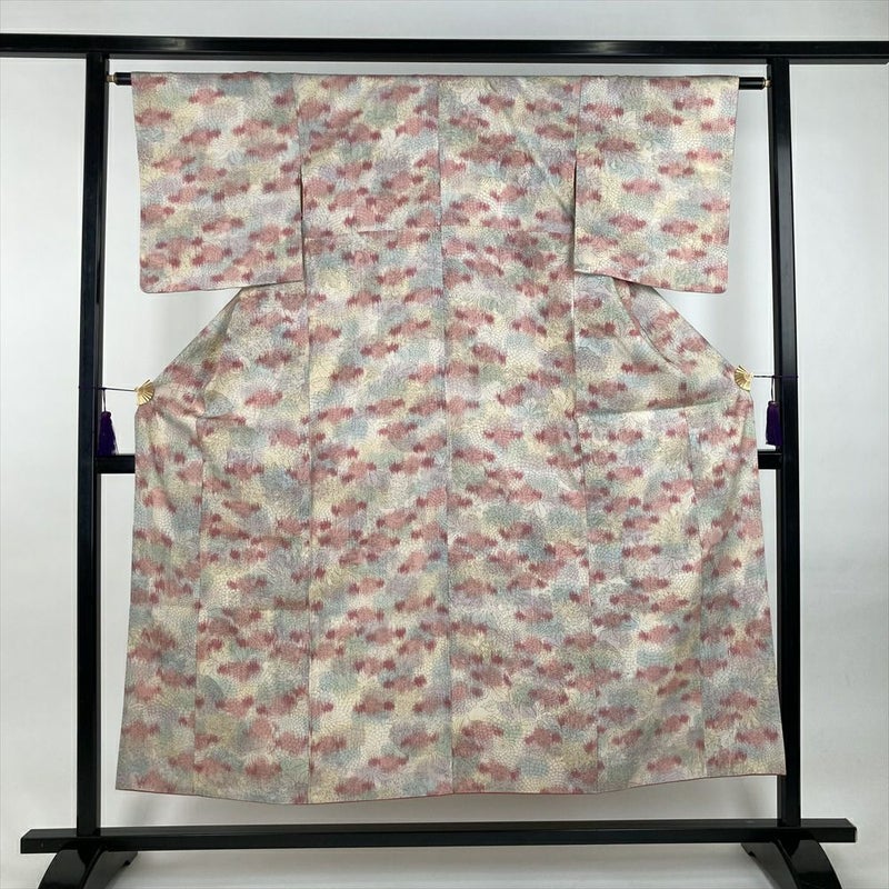 (中古)紬 ベージュ カジュアル 菊 型染 ぼかし 袷 SS【身丈】148.5cm 【裄丈】63cm
